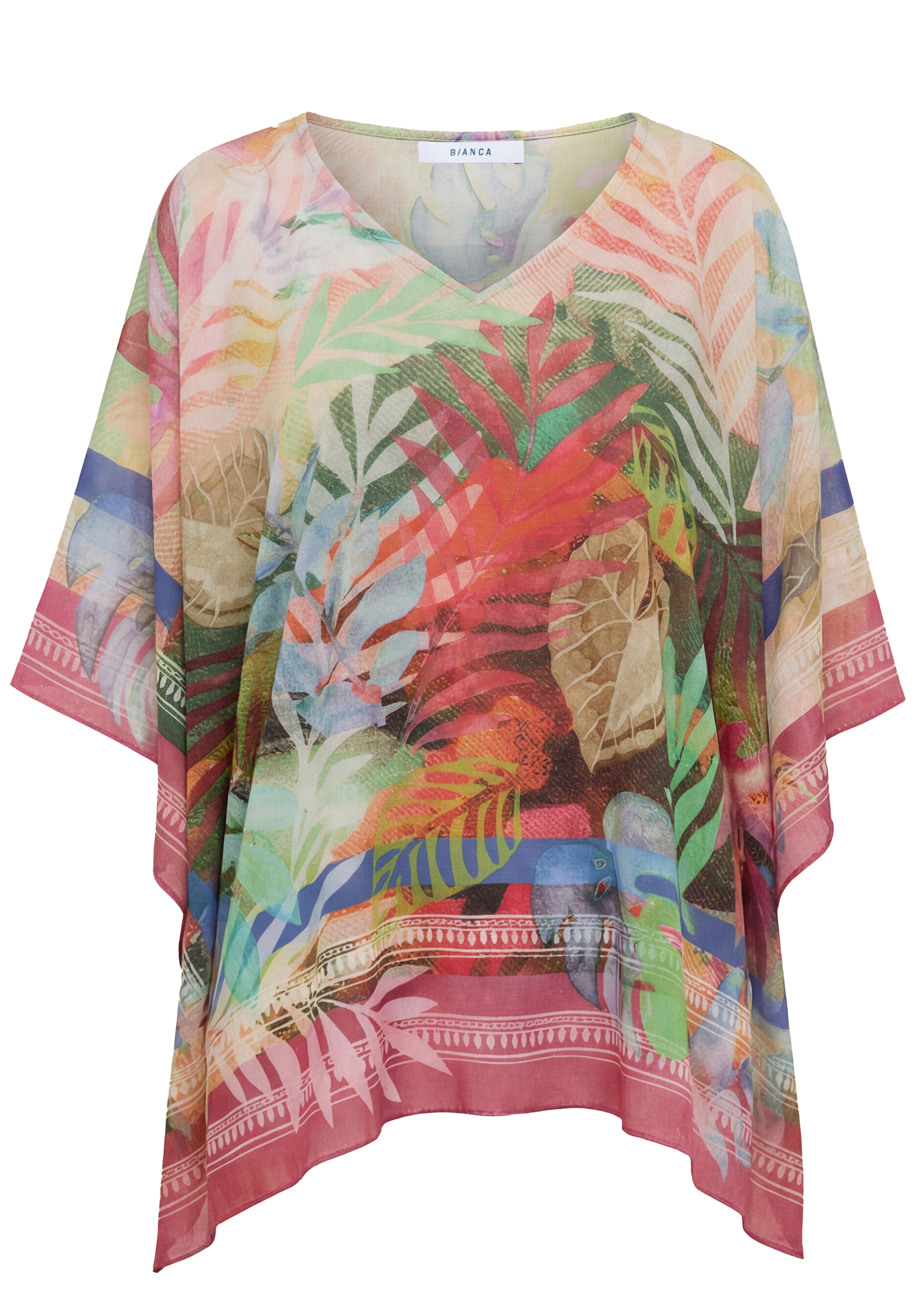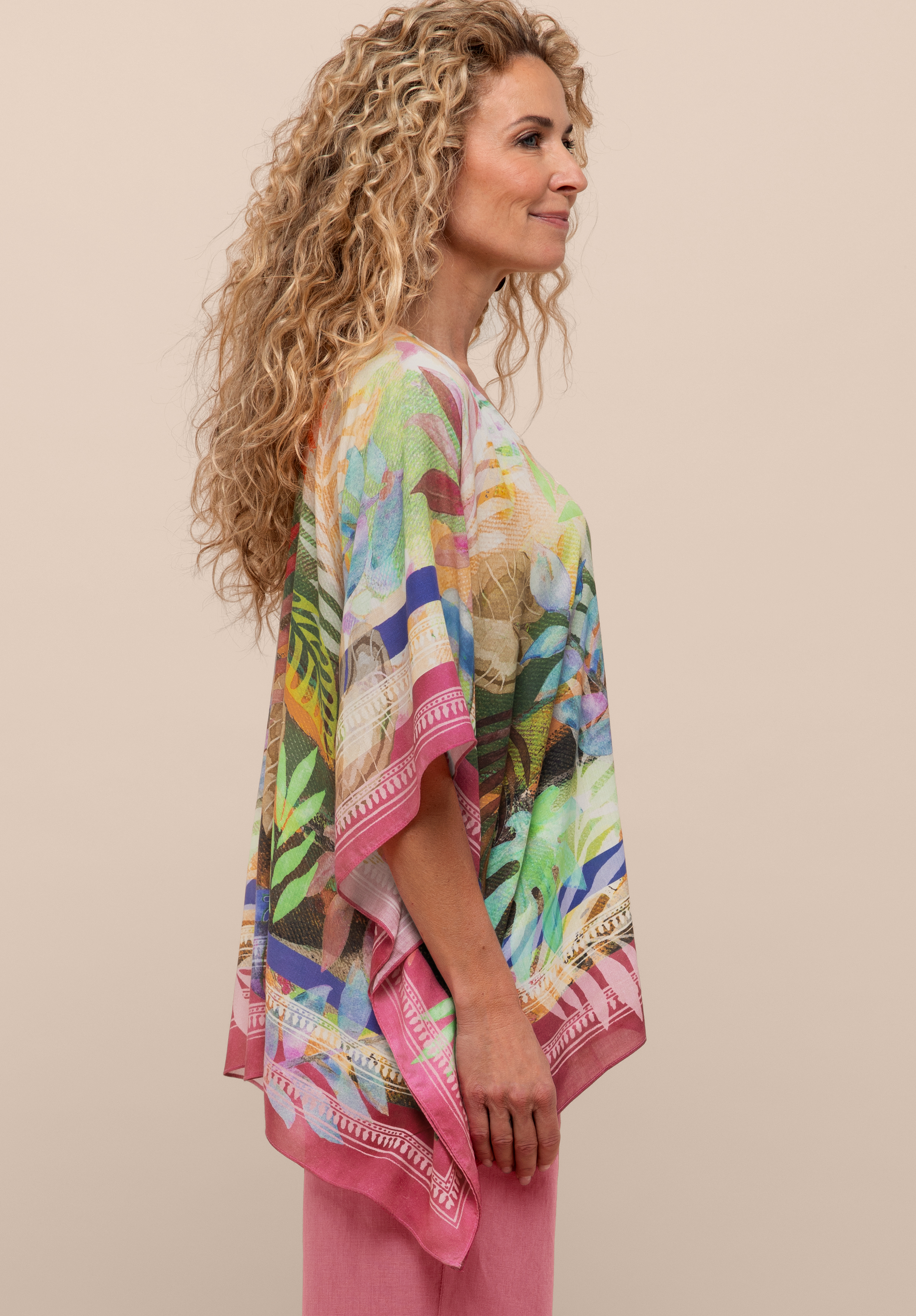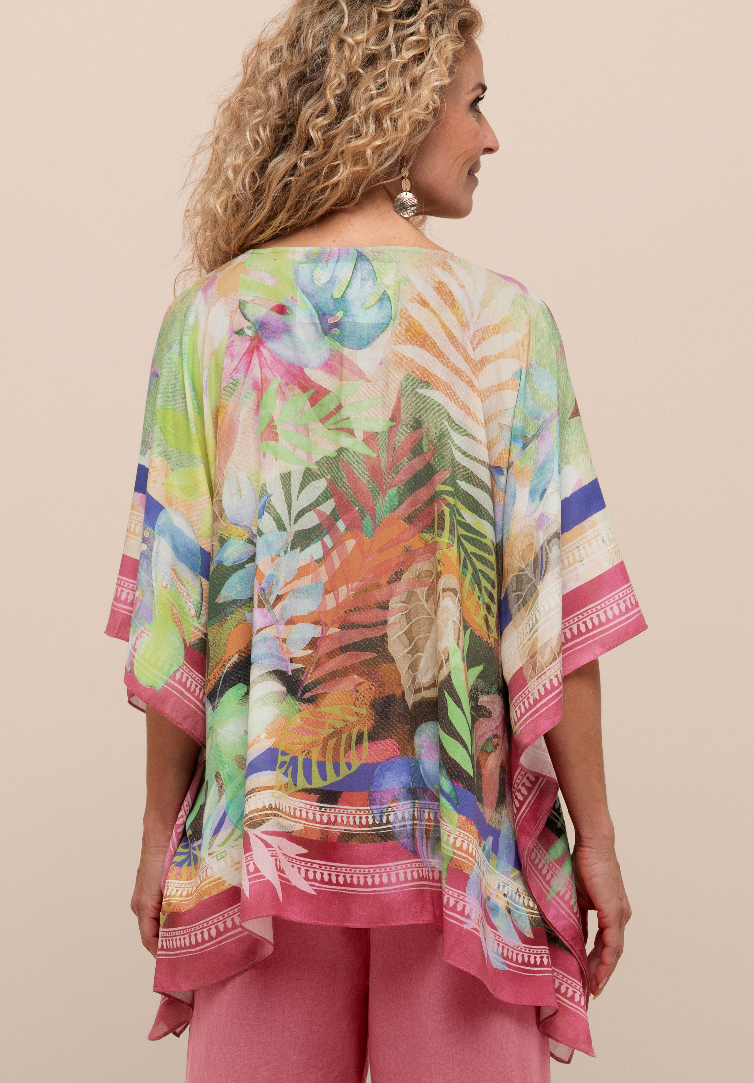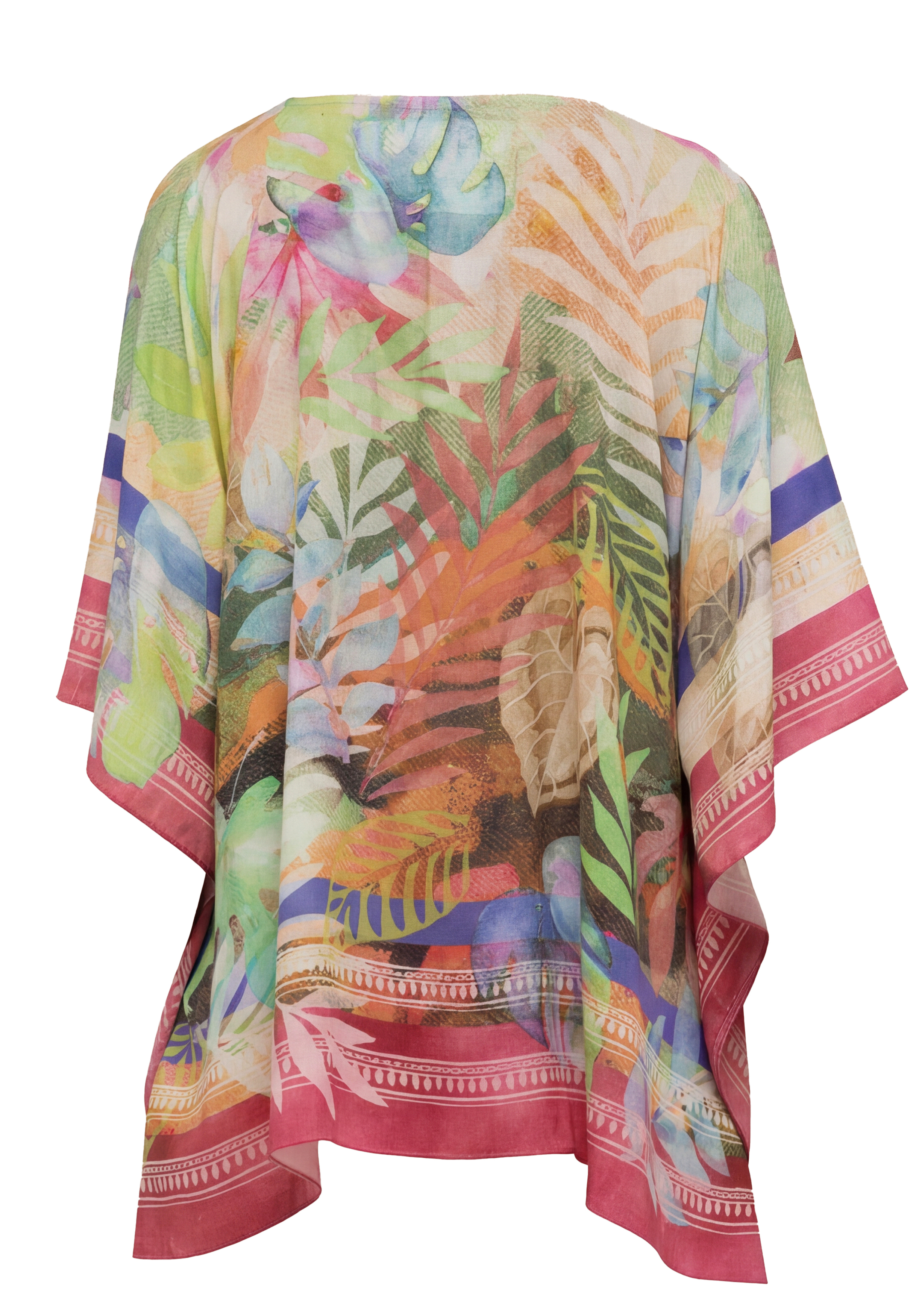 Leicht, unkompliziert und voller Urlaubsflair - unser Blusenkimono mit V-Ausschnitt und ausdrucksstarkem Tuch-Print ist der perfekte Begleiter für Ihre nächste Reise! Die locker fallende, verschlusslose Form aus weicher Modal-Qualität trägt sich angenehm und lässt sich vielseitig kombinieren. Einfach mit Top und Shorts kombinieren - und Ihr Look wird zum sommerlichen Hingucker.