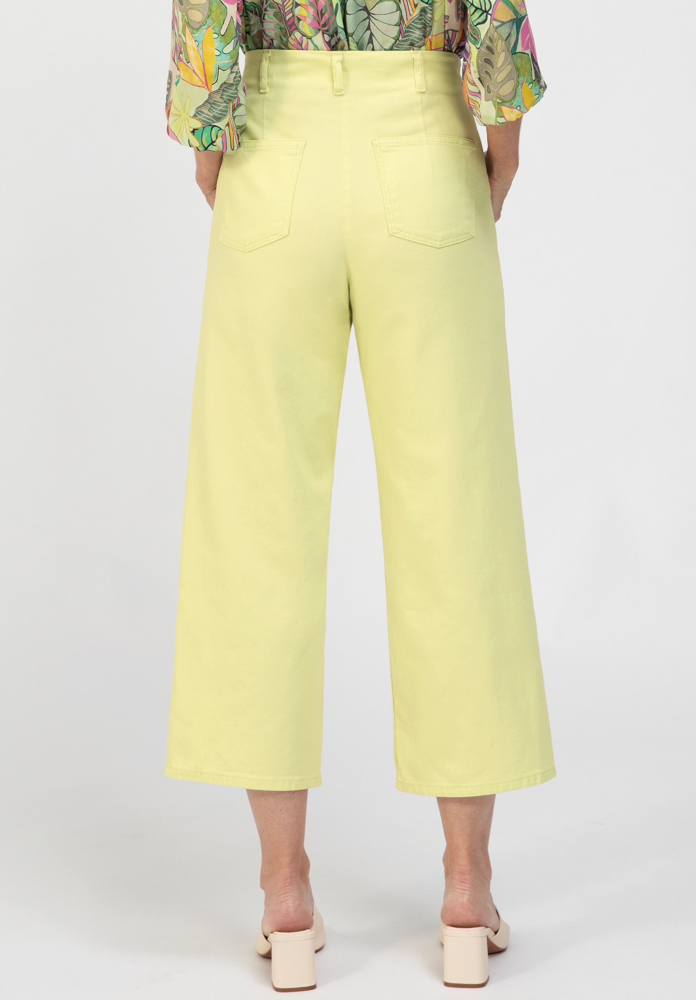Unsere sportive Culotte Arizona überzeugt im angesagten Casual-Look und in der frischen Trendfarbe "Lemondrop". Eingrifftaschen vorne und aufgesetzte Taschen hinten verleihen der Hose eine moderne, lässige Note, während der angeschnittene Bund mit Gürtelschlaufen für eine optimale Passform sorgt. Die gerade, verkürzte Silhouette unterstreicht den zeitgemäßen Stil und bietet vielseitige Kombinationsmöglichkeiten. Gefertigt aus hochwertiger, vorgewaschener Baumwolle mit Elasthan sorgt Arizona für angenehmen Tragekomfort und optimale Bewegungsfreiheit, ideal für entspannte und modische Alltagslooks.