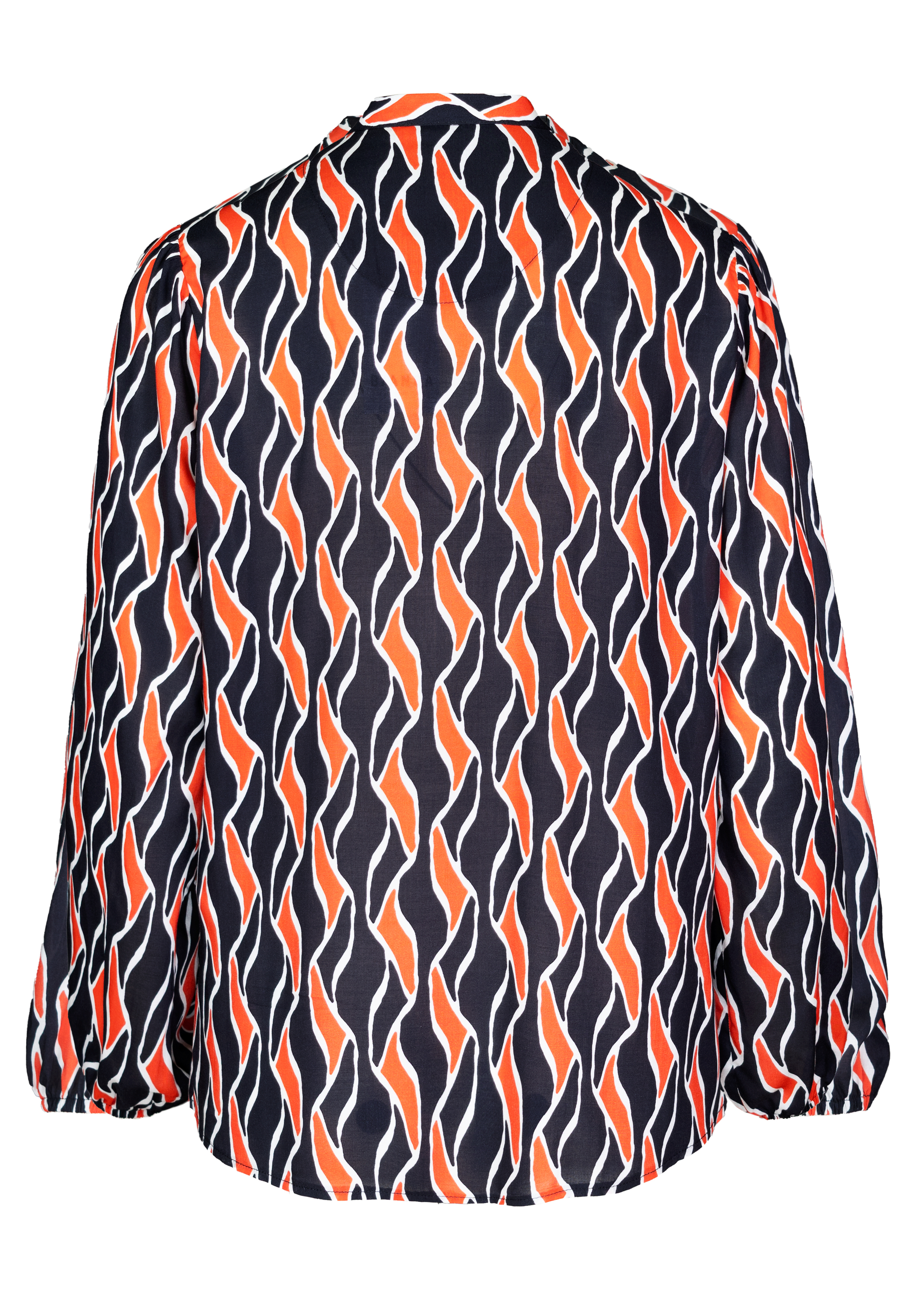 Unsere moderne Druckbluse Adina ist ein echtes Allround-Talent! Der grafische Allover-Print in Trendfarben, die lockere Passform und die Qualität aus 100 % Viskose machen sie besonders angenehm zu tragen. Der Stehkragen mit V-Ausschnitt und der elastische Gummibund am Langarm runden den Look stilvoll ab. Ob zu eleganten Hosen oder lässigen Jeans, Adina passt zu vielen Outfits und ist ein unverzichtbares Must-have.