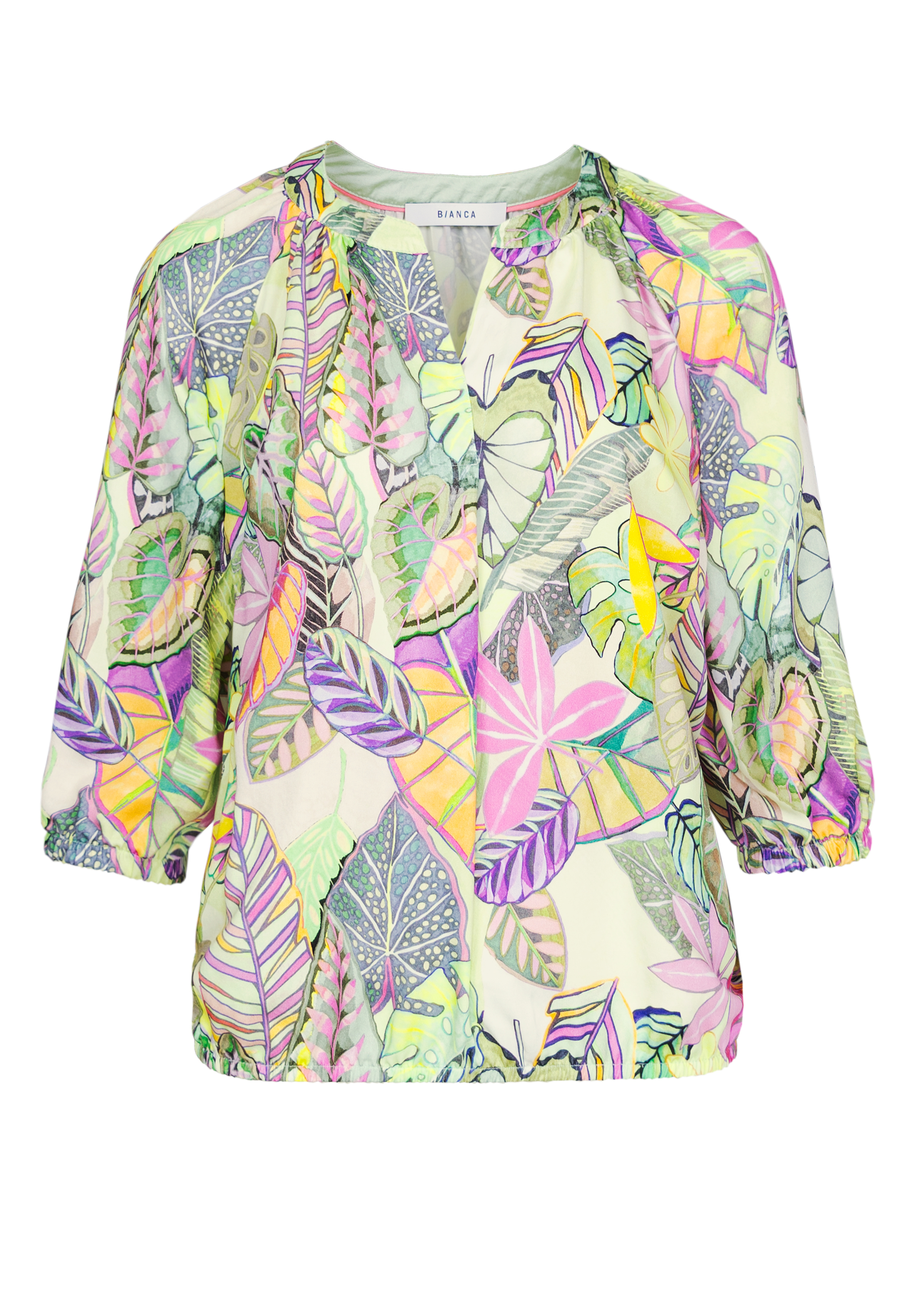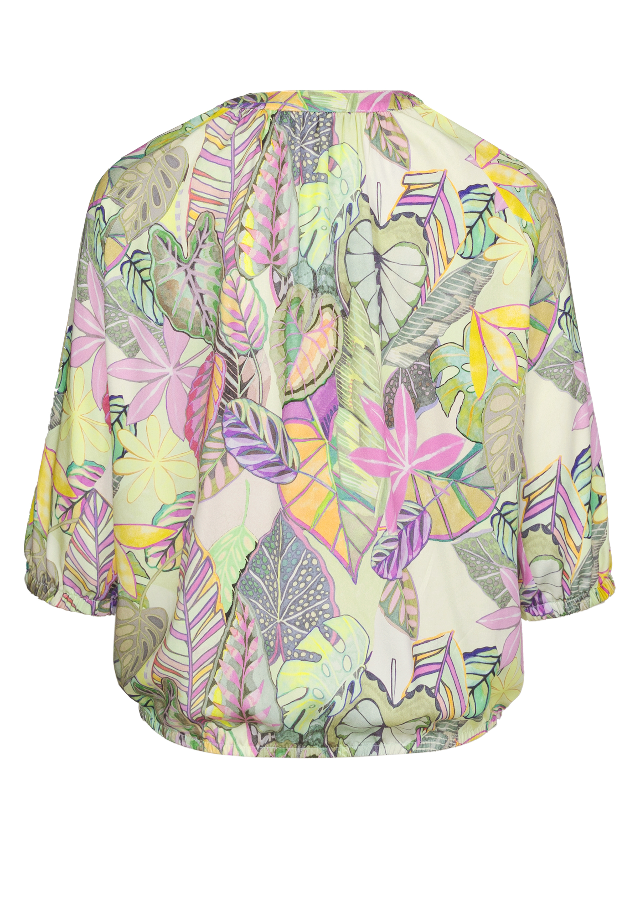 Ein modischer Begleiter ist unsere Schlupfbluse Rana. Sie besticht durch ihr modisches Blätter-Dessin und eine angenehm lockere Passform. Der dezent geraffte Tunika-Ausschnitt verleiht der Bluse eine moderne Note. Praktische Details wie der Gummibund am Saum und an den 3/4-Ärmeln sorgen für einen entspannten Sitz und runden das Design stilvoll ab. Ein vielseitiges Lieblingsstück, das sich perfekt für schicke Kombinationen oder lässige Freizeitlooks eignet.