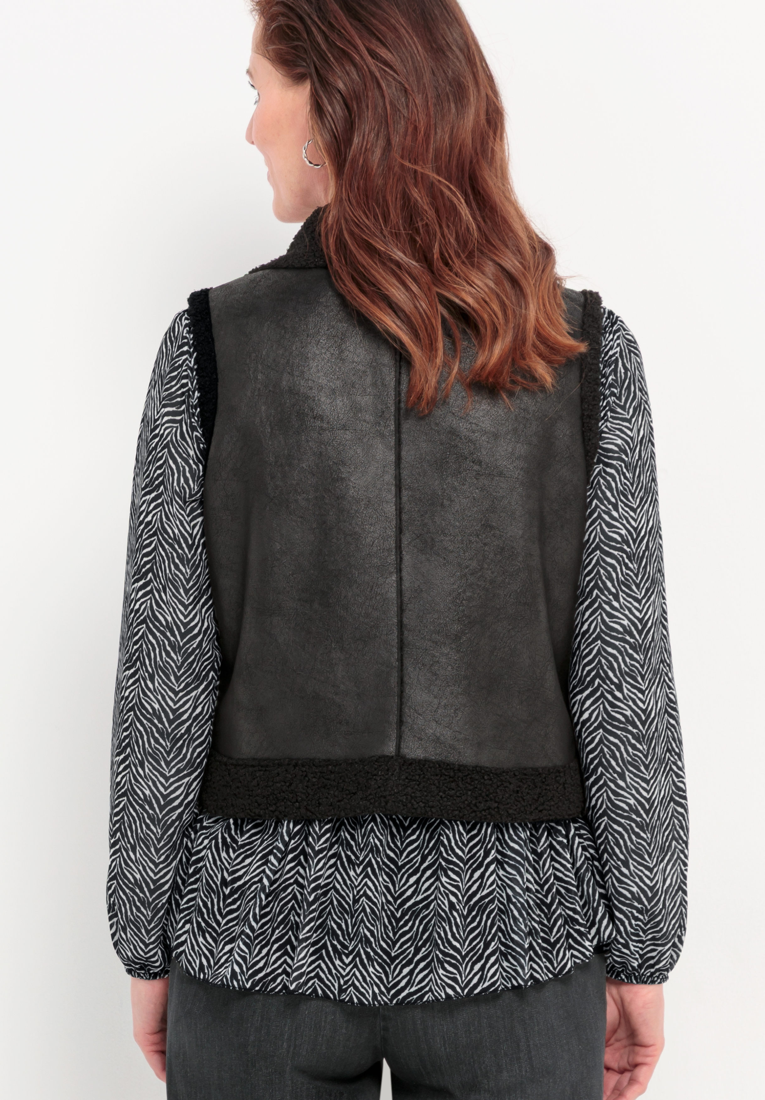 • Angesagte Fellimitat-Weste mit Reverskragen, Shearling-Optik