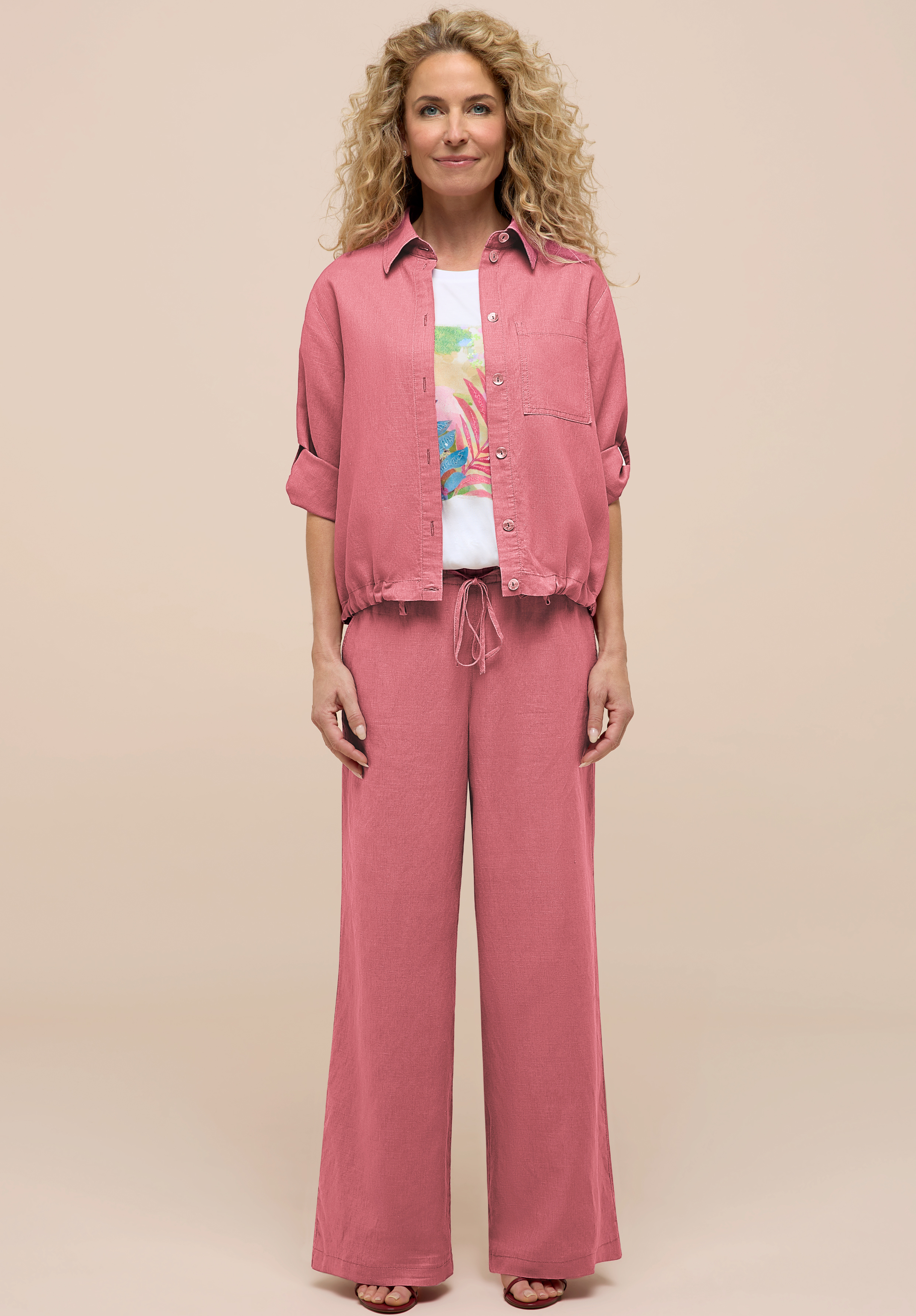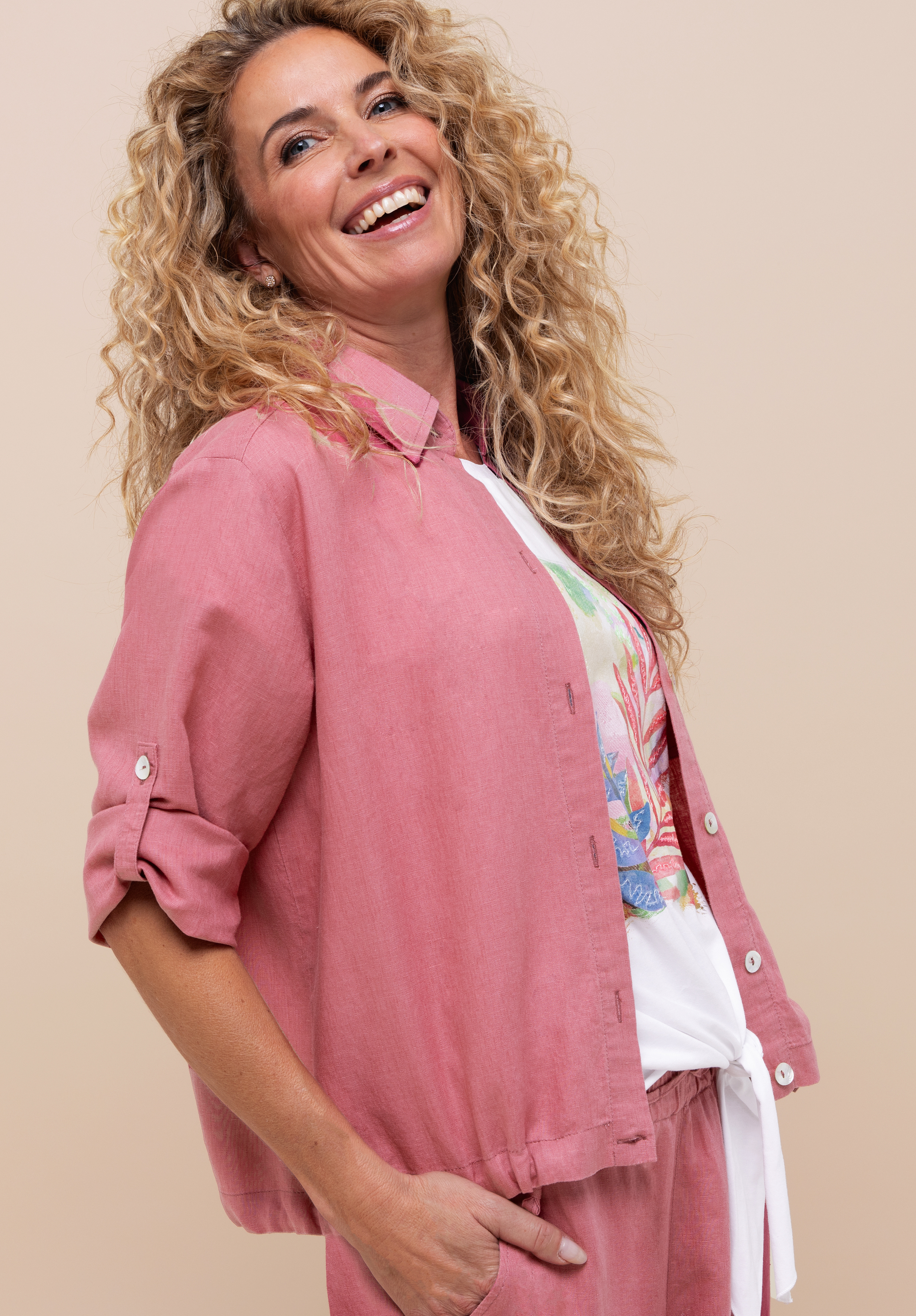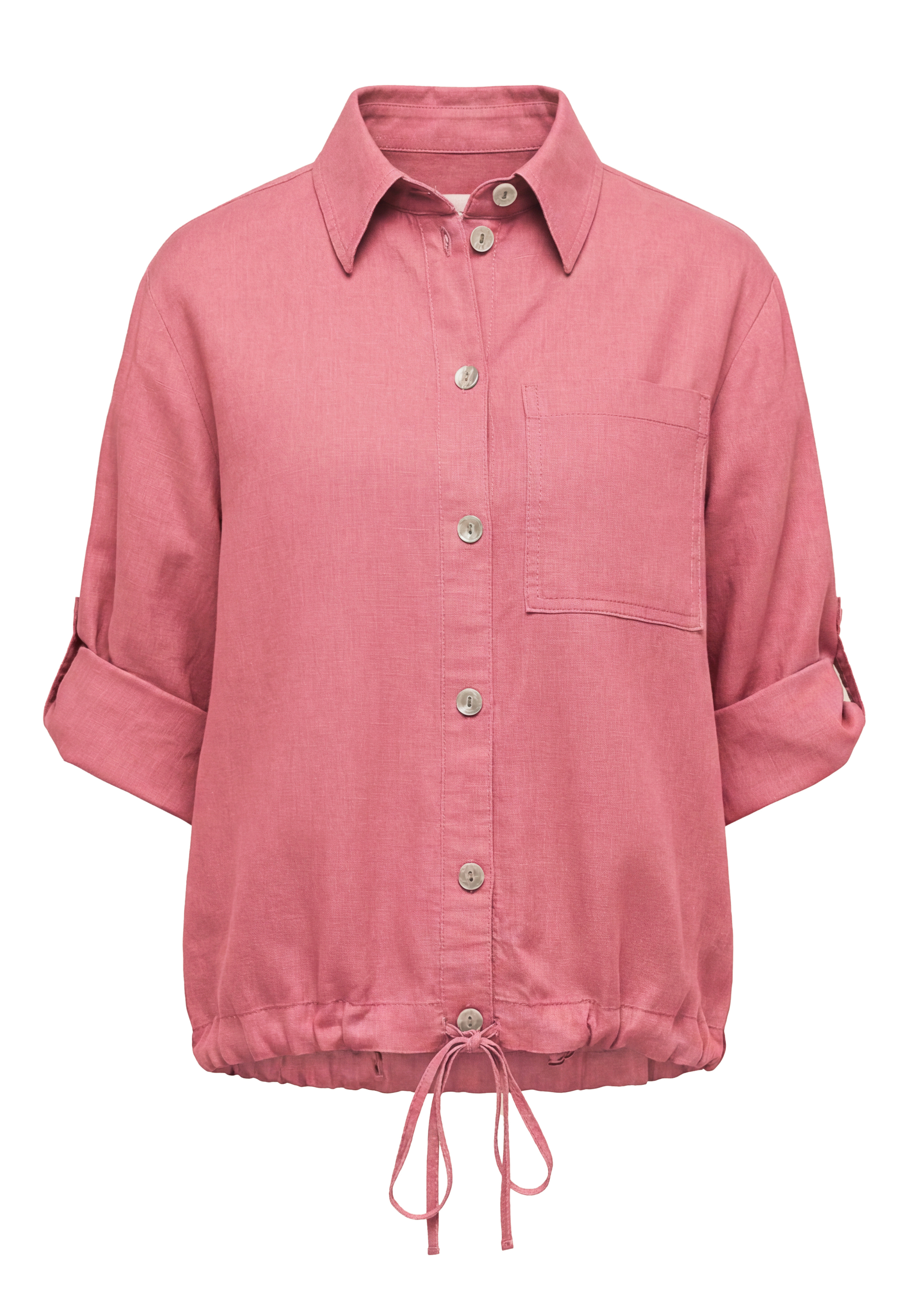 Ein cooler Style für jeden Tag! Unsere coole Blusenjacke Alice überzeugt mit klassischem Hemdkragen, durchgehender Knopfleiste und lässigem Krempelärmel. Die weiche Leinen-Lyocell Mischung sorgt für ein angenehm softes Tragegefühl, während die Brusttasche und der Tunnelzug mit Bindeband am Saum für einen modernen Akzent sorgen. In ihrer kurzen, geraden Passform lässt sich Alice vielseitig stylen - ob offen über einem Top oder solo getragen. Ein echtes Lieblingsstück für entspannte Sommerlooks!