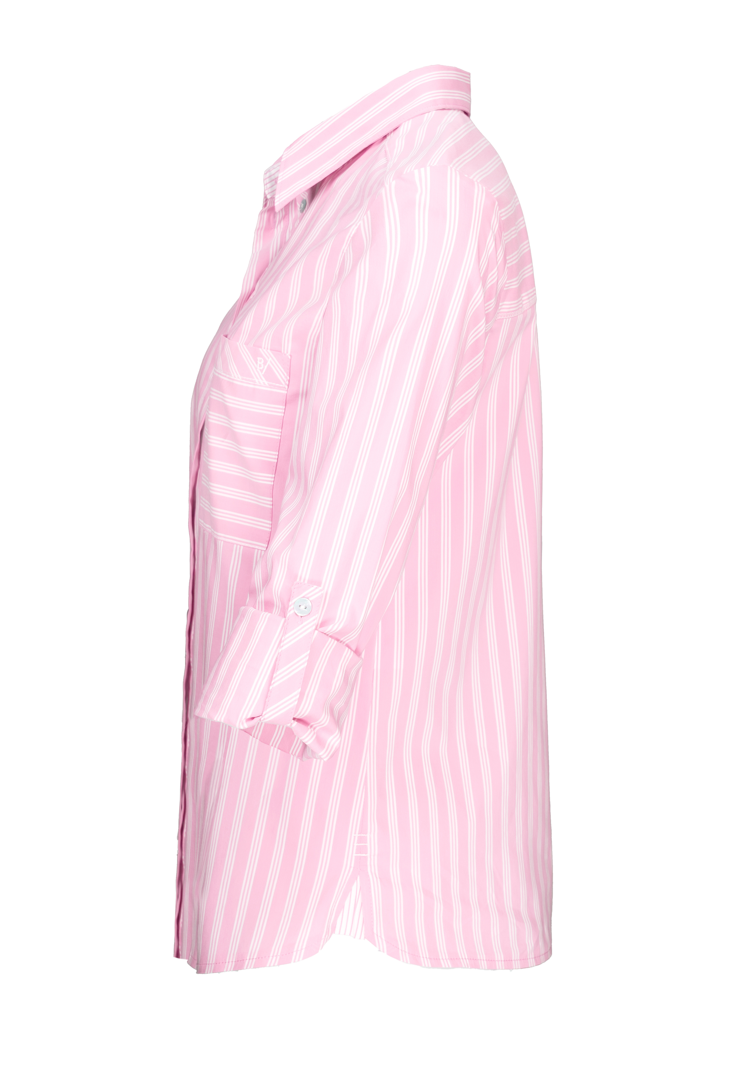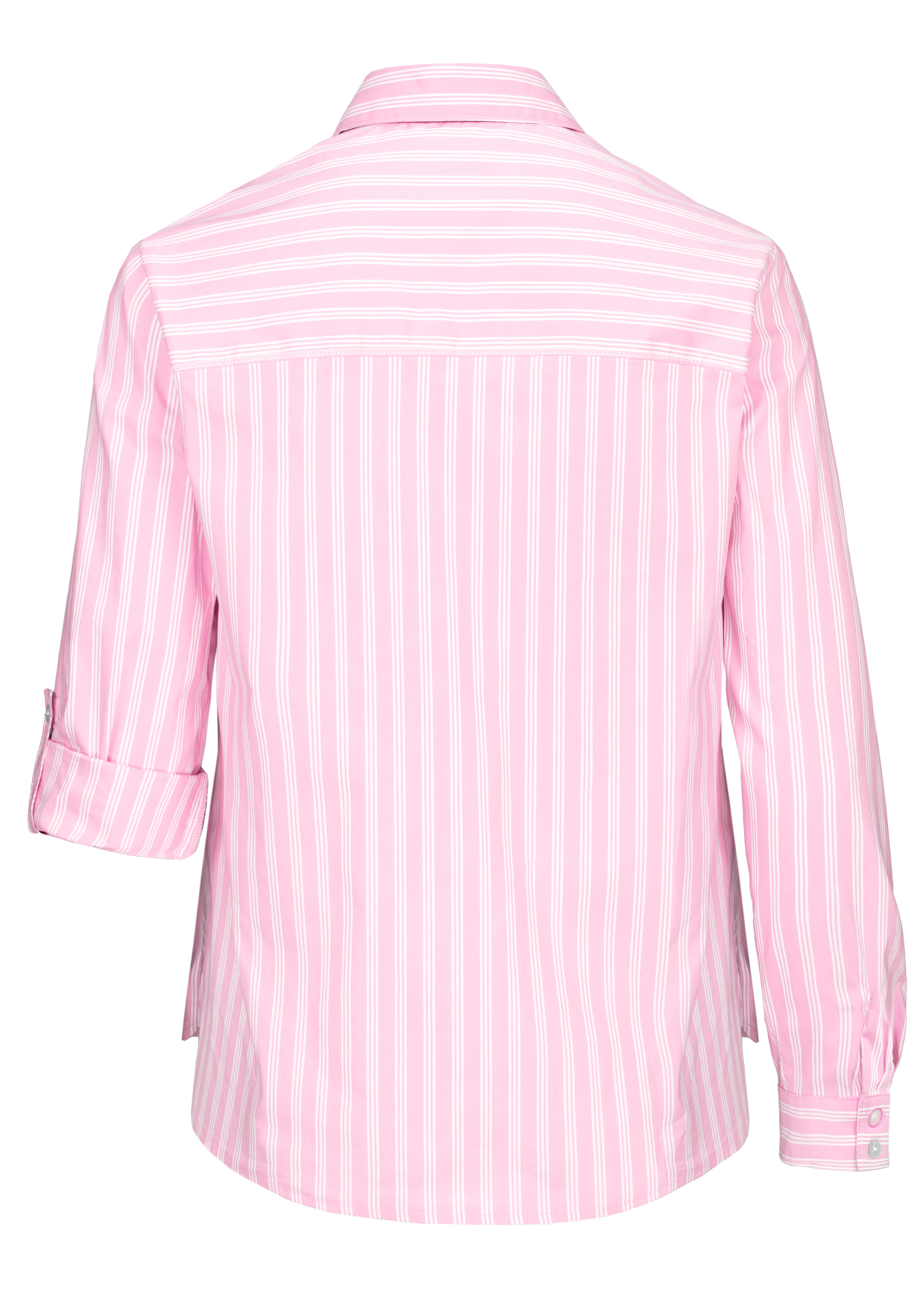Unsere Hemdbluse Anina in angesagtem Streifen-Look ist ein vielseitiger Allrounder. Der hochwertige Materialmix mit Elasthan und die gerade, lockere Passform bieten hohen Tragekomfort. Dezente Ziernähte auf Passe und Brusttasche sowie seitliche Saumschlitze setzen stilvolle Akzente. Mit durchgehender Knopfleiste, klassischem Hemdblusenkragen und langen Ärmeln, die sich hochkrempeln und fixieren lassen, punktet Anina mit Funktionalität und Stil. Ob lässig mit Jeans und Sneakern oder schick mit einer Businesshose - Anina passt zu vielen Looks.