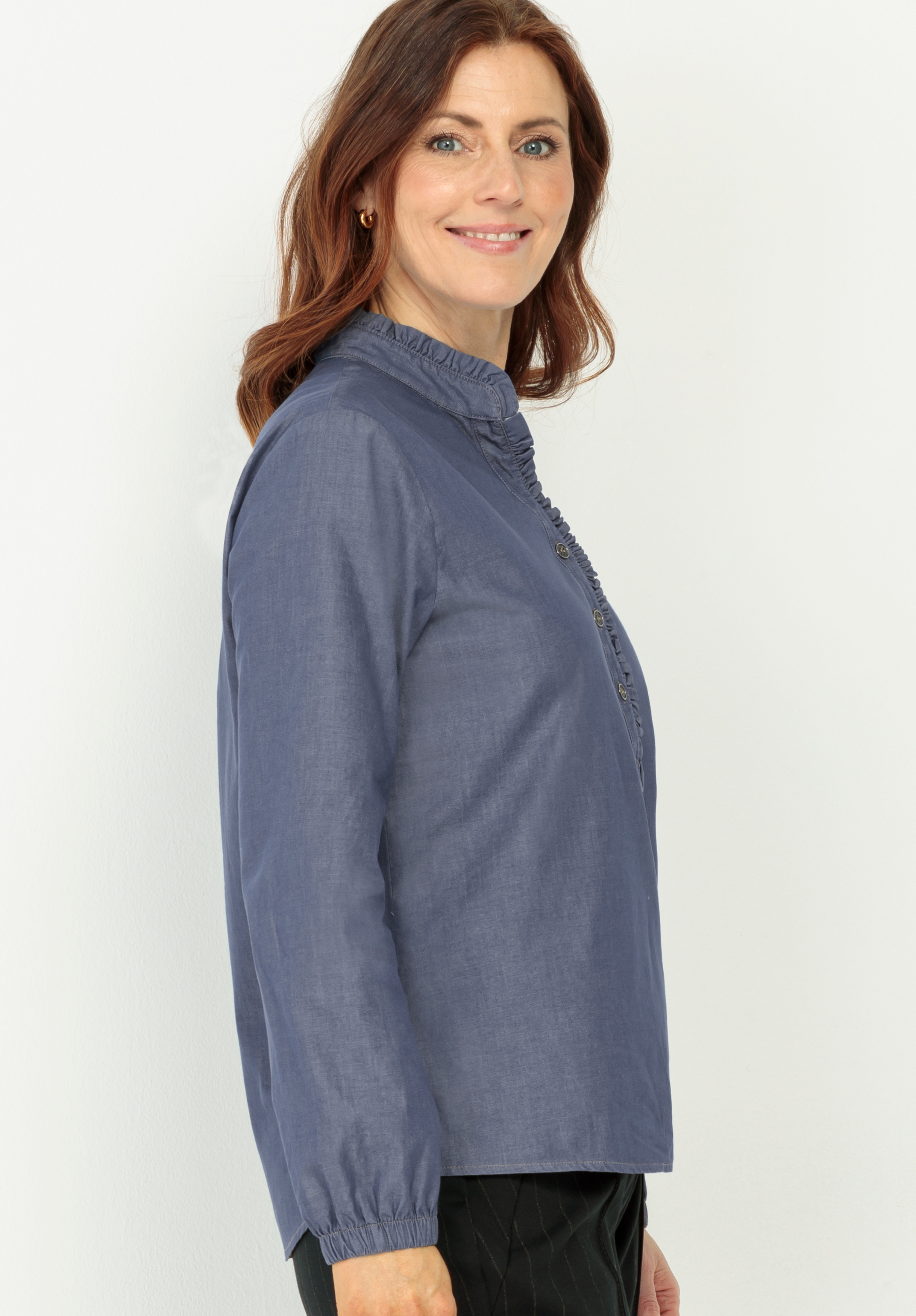 - Coole Jeansbluse mit Stehkragen und Rüschendetail