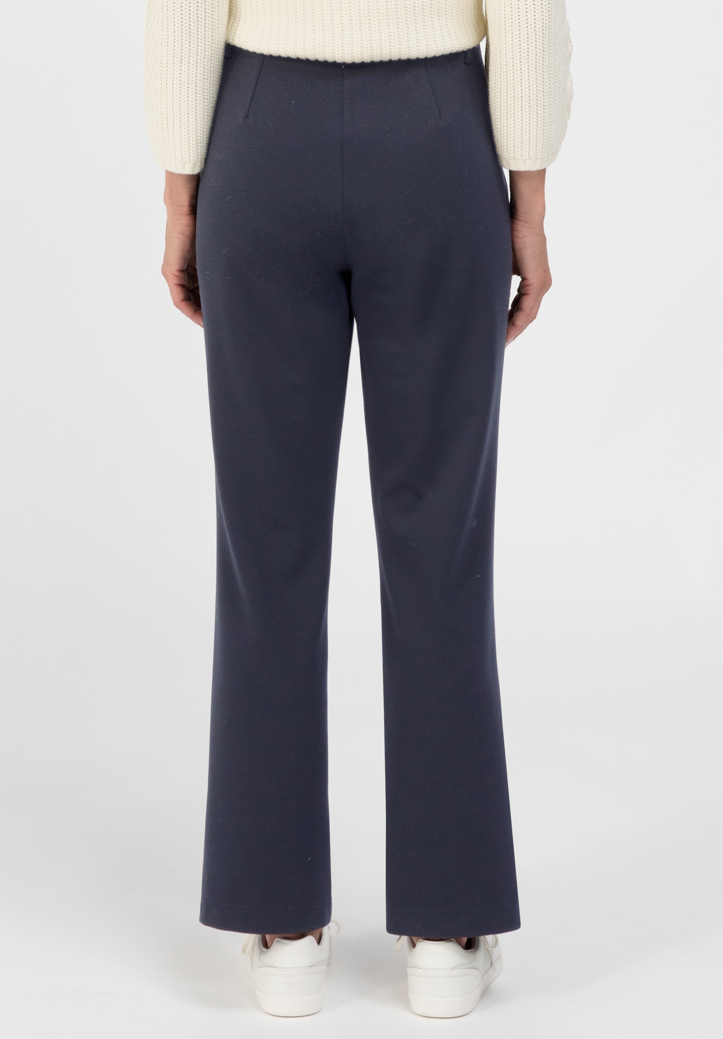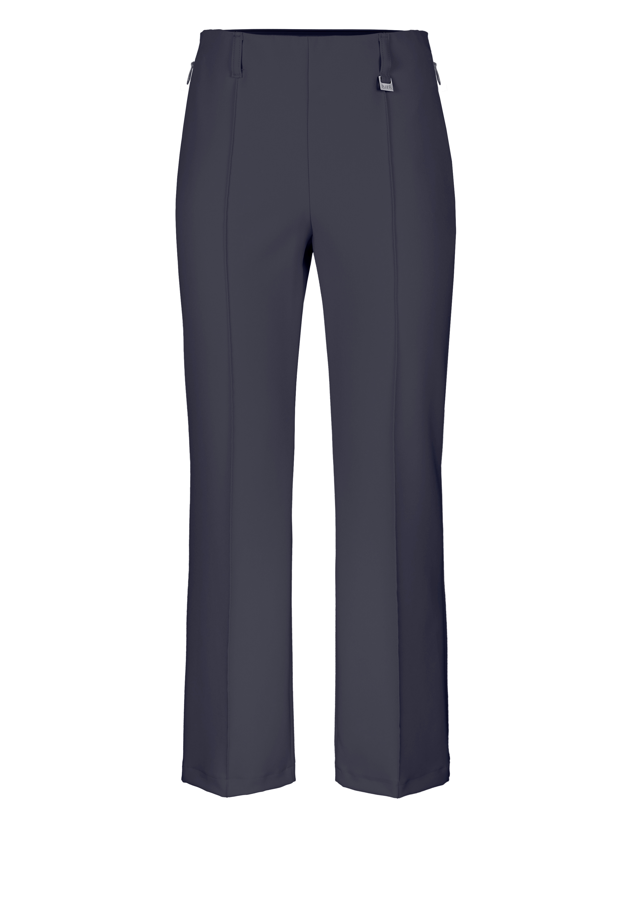 Angesagte Jerseyhose Siena mit modernem Chic und hohem Tragekomfort. Der innenliegende Gummibund, die seitlichen Reißverschlusstaschen und Gürtelschlaufen verleihen ihr eine sportiv-elegante Note. Eine dezente Biese vorne streckt optisch das Bein und betont die schmale, gerade Passform. Gefertigt aus einem hochwertigen Jersey-Materialmix bietet Siena ein angenehmes und formstabiles Tragegefühl, ideal für Büro, Freizeit oder Reisen.