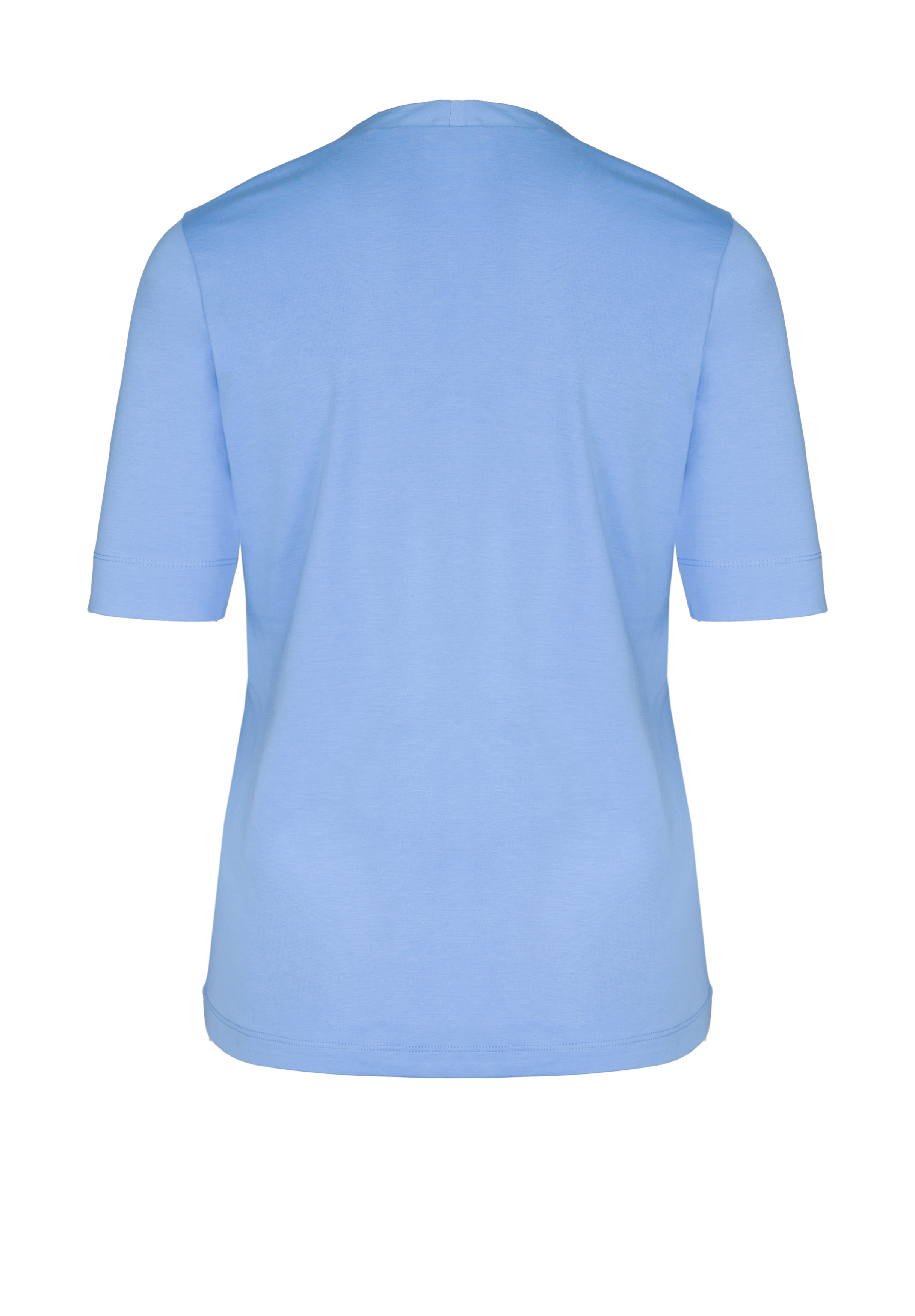 Unser neues schickes Kurzarmshirt Edira in einer modernen Trendfarbe und mit femininem V-Ausschnitt. Die hochwertige Pima-Cotton-Qualität liegt besonders weich auf der Haut, ist atmungsaktiv und überzeugt durch ihren natürlichen, leicht seidigen Glanz. Eine dezente Logo-Stickerei am Saum rundet das Design ab. Die leicht taillierte Passform macht dieses Shirt zu einem vielseitigen Begleiter für jeden Tag.