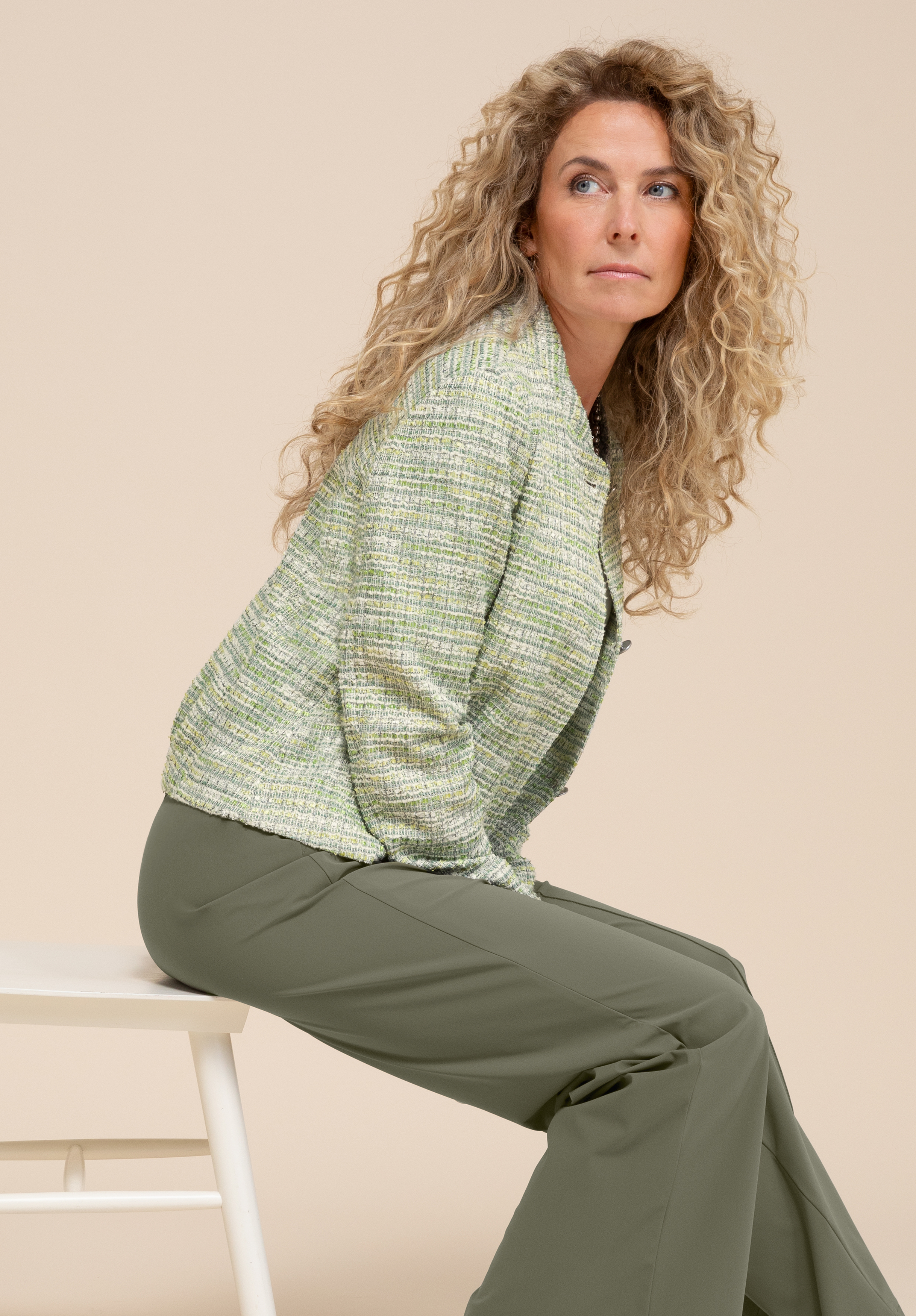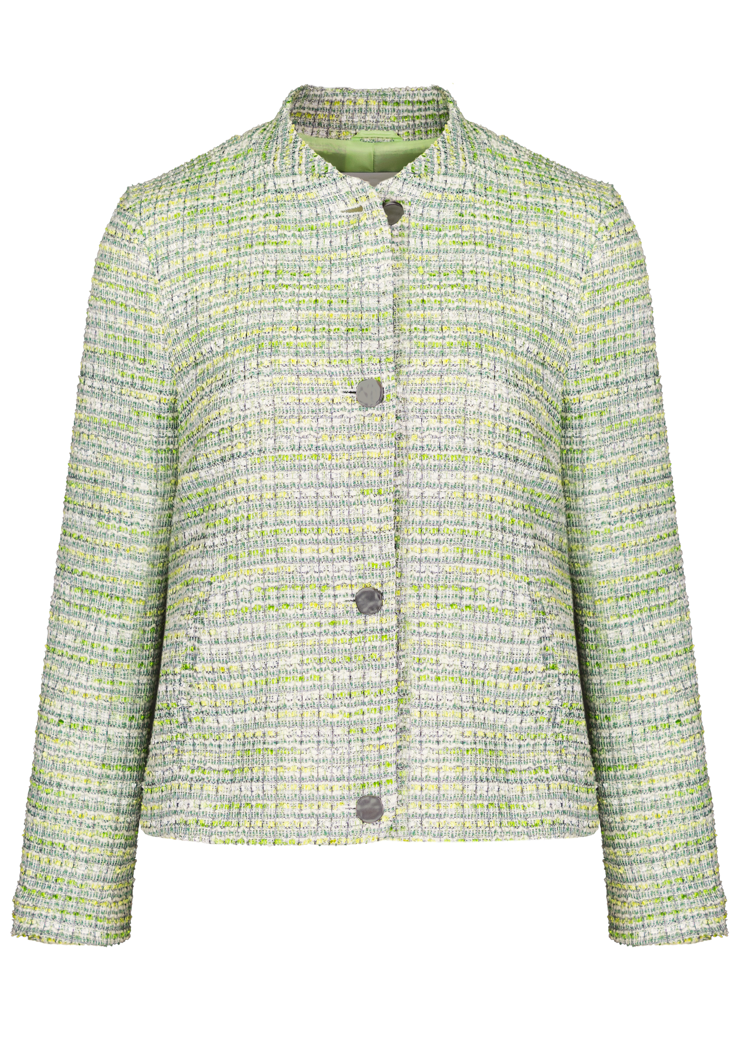 Unser neuer Kurzblazer Kathi setzt stilvolle Akzente und ergänzt jedes Outfit perfekt. Der hochwertige Materialmix, das Innenfutter und ein Gummibund im Rückteil sorgen für ein angenehmes Tragegefühl. Eine elegante Knopfleiste, Eingrifftaschen und der kleine Stehkragen unterstreichen den edlen Look. Die verkürzte Passform und die langen Ärmel mit kleinen Schlitzen am Saum machen Kathi vielseitig kombinierbar, ideal zum Überziehen für besondere Anlässe oder lässig für die Freizeit.