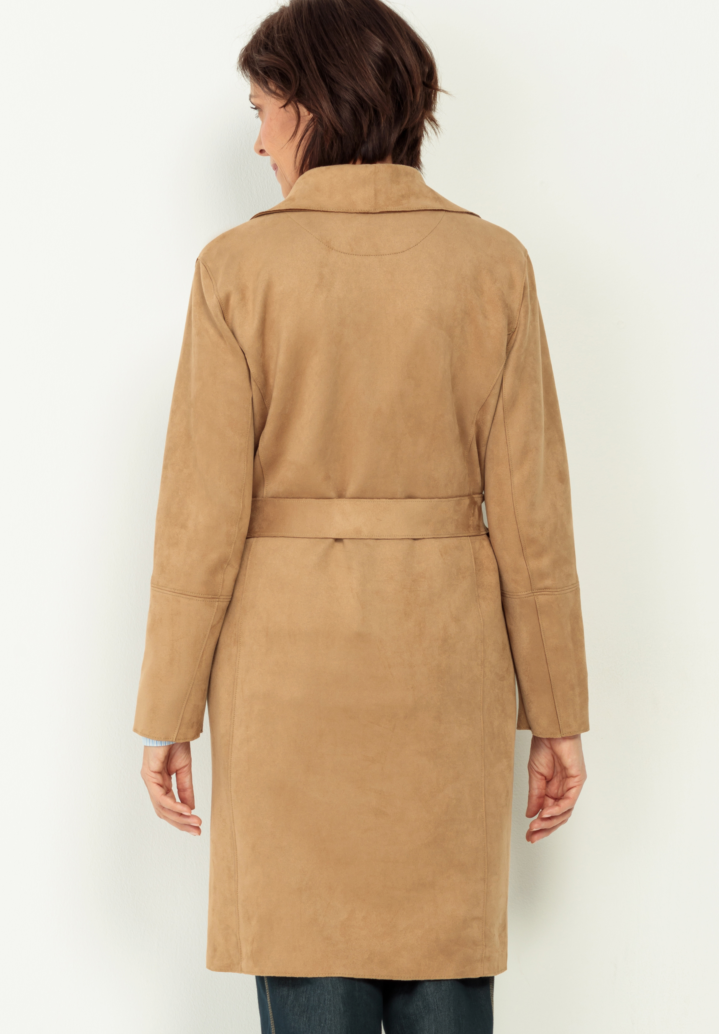 Unser zeitloser Mantel Vianne begeistert durch seine hochwertige Verarbeitung und die angenehme Haptik des Veloursledermaterials. Der Langarm und die praktischen Druckknöpfe sorgen für einen modernen Look, während der Bindegürtel die Taille betont und für eine individuelle Passform sorgt. Die seitlichen Nahtaschen bieten Platz für kleine Utensilien und runden das Design perfekt ab. Ob für den Alltag oder besondere Anlässe - dieser Mantel ist ein vielseitiges Must-Have, das Komfort und Coolness vereint.