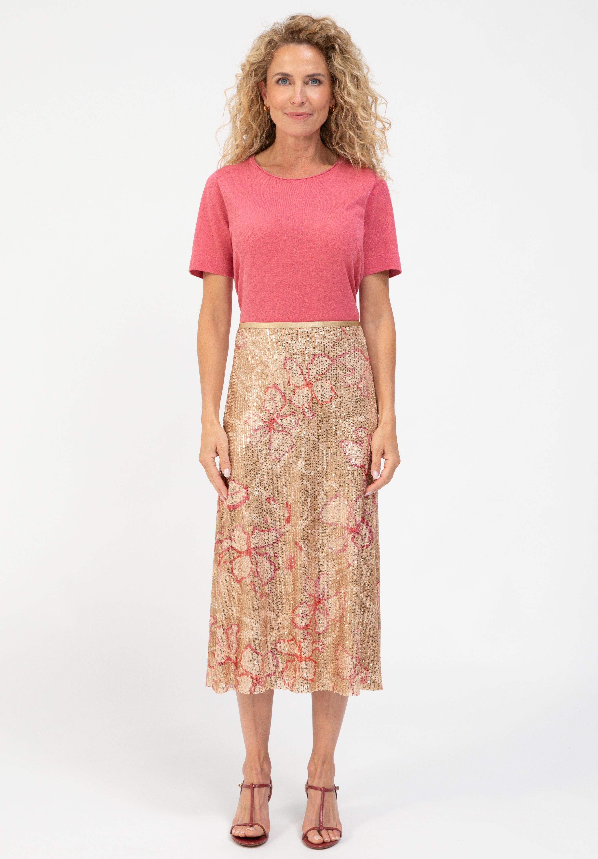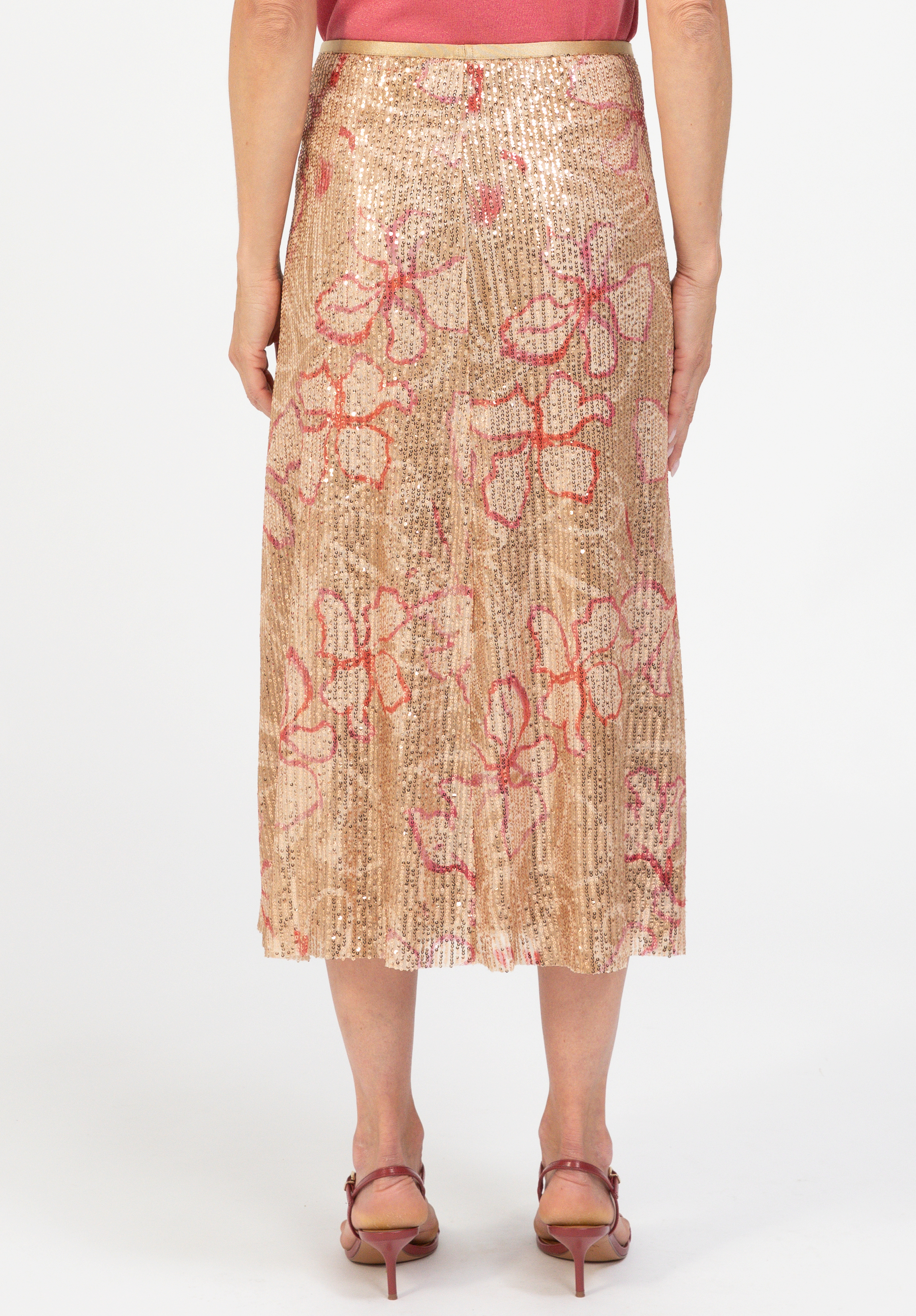 Glanzvoll auftreten mit Feli! Unser neuer schicker Paillettenrock überzeugt mit seiner modernen Maxi-Länge, der leicht ausgestellten Form und dem komfortablen Gummibund. Hochwertiges, elastisches Material und ein weiches Jerseyfutter sorgen für angenehmen Tragekomfort. Ein Rock, der Eleganz und Leichtigkeit vereint, und Sie bei jedem Anlass strahlen lässt.