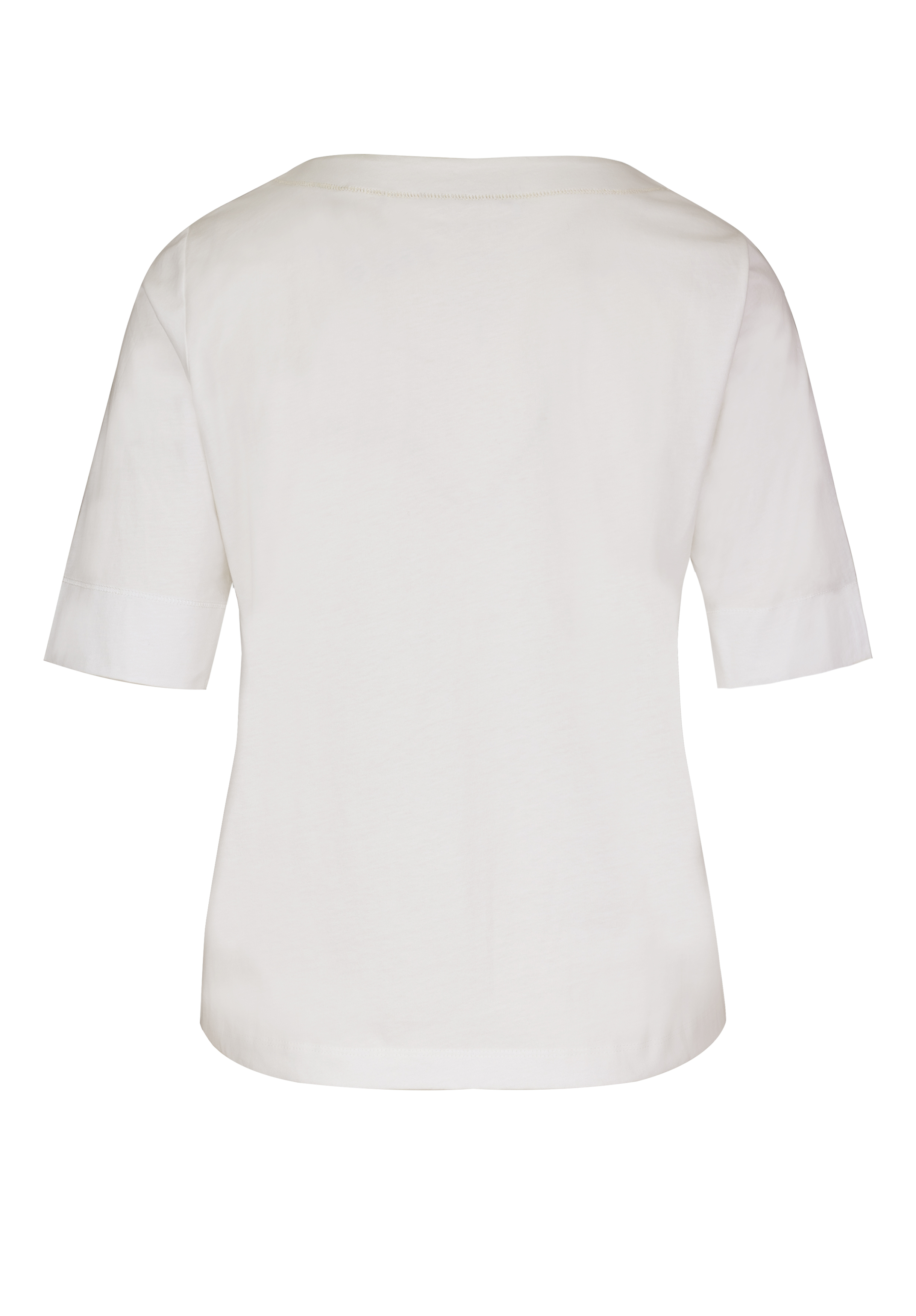 Ein perfekter Begleiter für jeden Tag: Unser cooles Print-Shirt Dinia überzeugt mit einem dezenten grafischen Blumenmotiv und zeitlosem Design. Der Rundhalsausschnitt mit breiter Blende verleiht dem Shirt eine moderne Note, während der Mailänder-Arm, ein etwas längerer, schmeichelnder 1/2-Arm, für eine feminine Silhouette sorgt. Der gerade Schnitt mit schmaler Passform sorgt für eine klare, moderne Silhouette. Gefertigt aus hochwertiger, reiner Baumwolle bietet das Print-Shirt Dinia angenehmen Tragekomfort und beste Qualität.