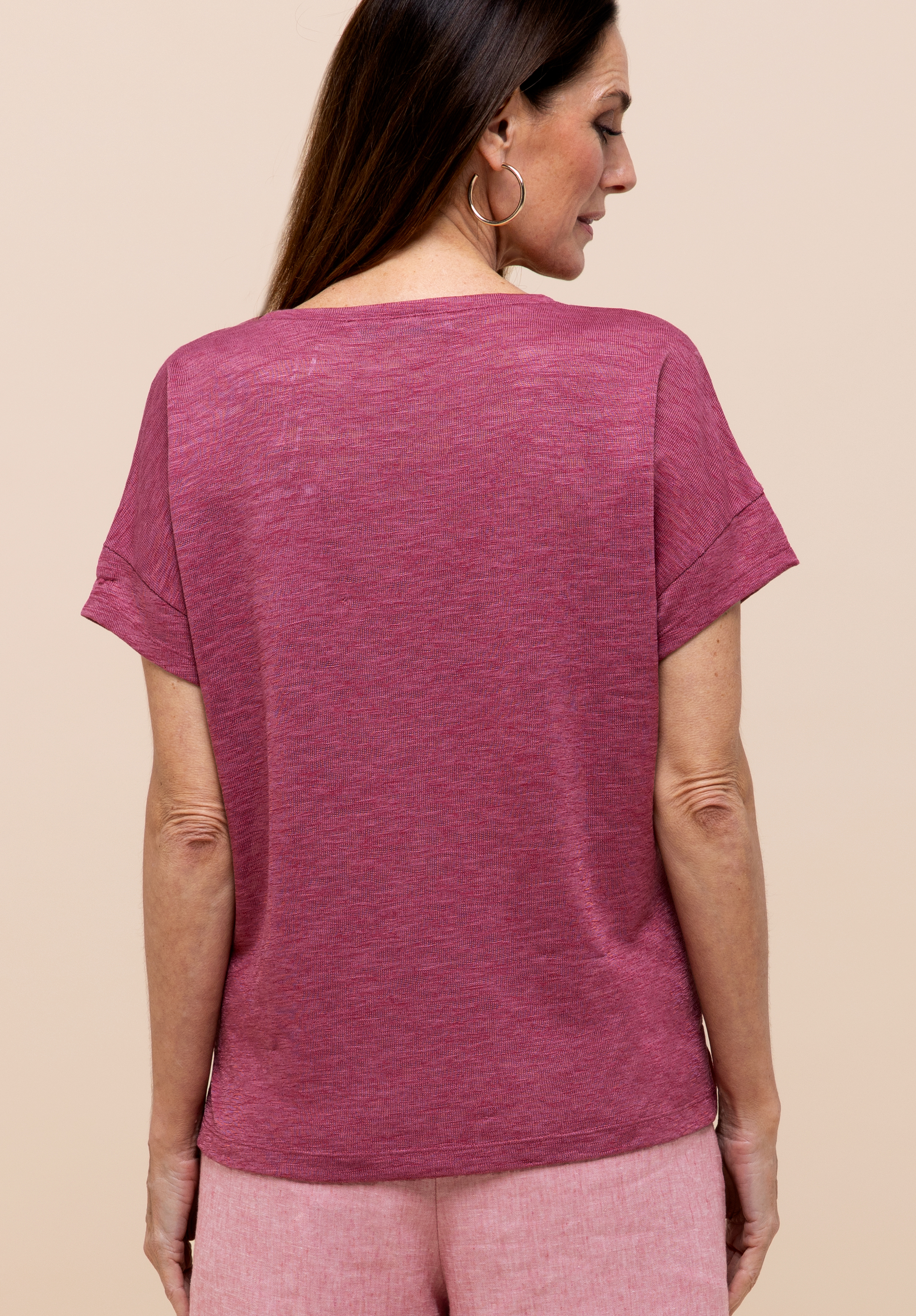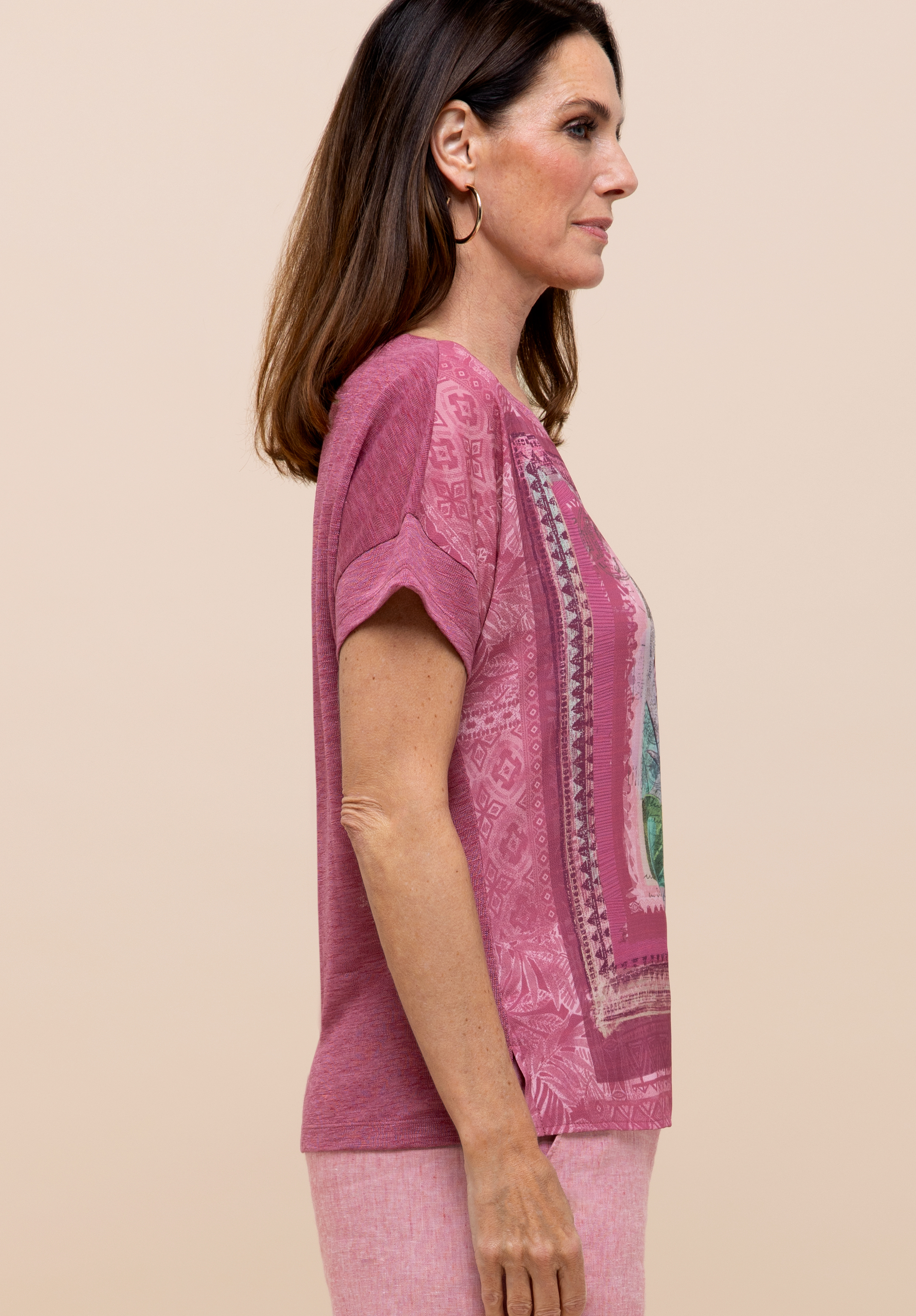 Modisches Statement mit Wohlfühlfaktor! Unser neues Print-Shirt Julie kombiniert ein cooles Frontmotiv mit funkelnden Strasssteinen mit einem Rückenteil aus unifarbener Strick-Qualität. Der feminine Rundhals-Ausschnitt und die gerade, leicht lockere Passform sorgen für einen entspannten Look mit modischem Touch. Der hochwertige Materialmix fühlt sich angenehm auf der Haut an - ideal für lässige Outfits mit Stil.