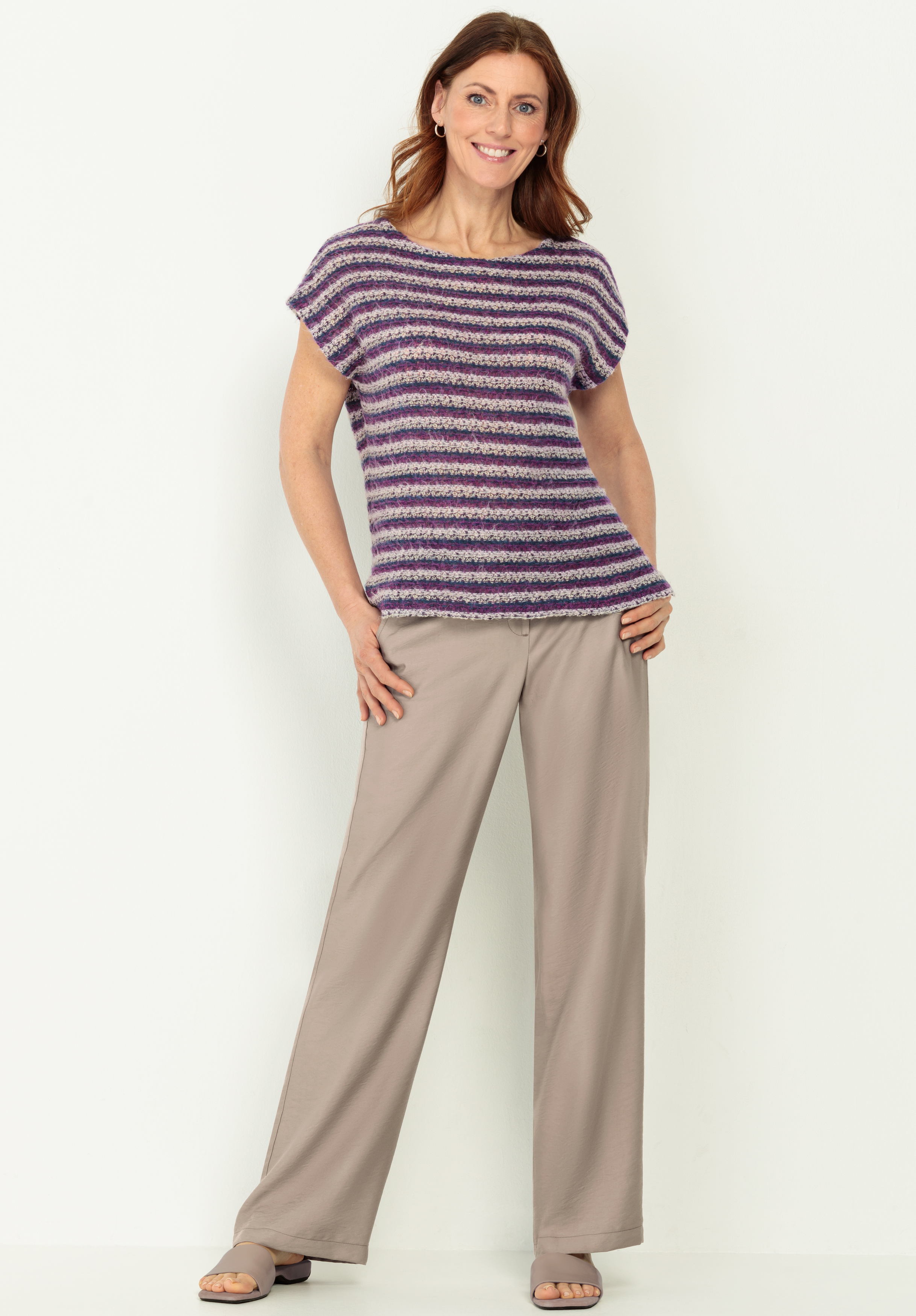 Modisch und vielseitig, unser Rundhalsshirt in angesagter Streifenoptik begeistert mit seiner soften Strick-Schnittware in aktuellen Trendfarben. Die überschnittenen Schultern und die gerade, lockere Passform unterstreichen den lässigen Stil. Dank des hochwertigen Materialmixes trägt sich das Shirt besonders angenehm. Leicht transparent lässt es sich ideal mit einem passenden Shirttop kombinieren - perfekt für moderne Layering-Looks.
