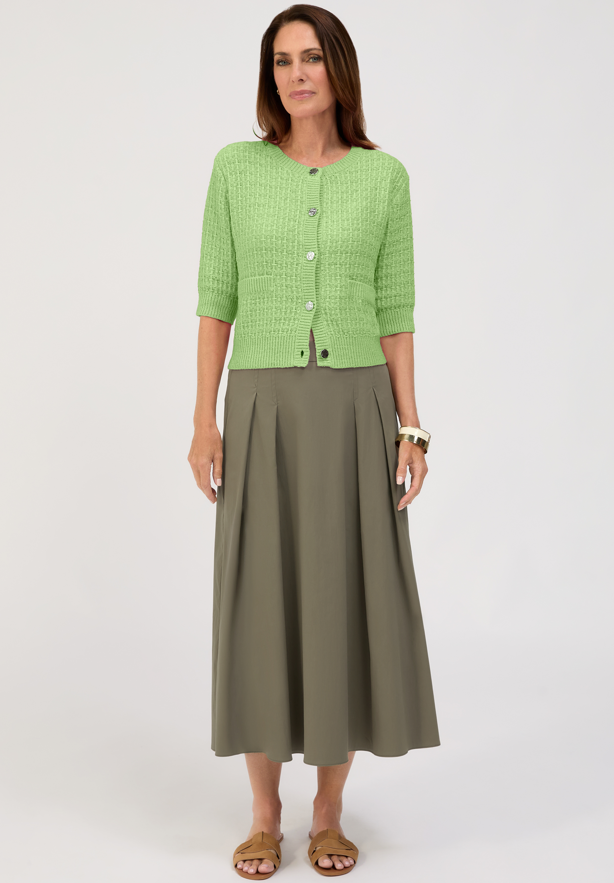 Der coole, unifarbene Schlupfrock Emma überzeugt mit modernem Design und lässiger Ausstrahlung. Falten im Vorderteil verleihen dem Rock eine schöne Bewegung, während seitliche Eingrifftaschen funktionale Akzente setzen. Der elastische Gummizug im Rückenteil sorgt für eine bequeme Passform und hohen Tragekomfort. Die lange, leicht ausgestellte Silhouette unterstreicht den femininen Look und bietet vielseitige Kombinationsmöglichkeiten. Der hochwertige Materialmix sorgt für ein angenehmes Tragegefühl im Alltag. Emma ist damit ein stilvoller Begleiter für moderne und entspannte Outfits.