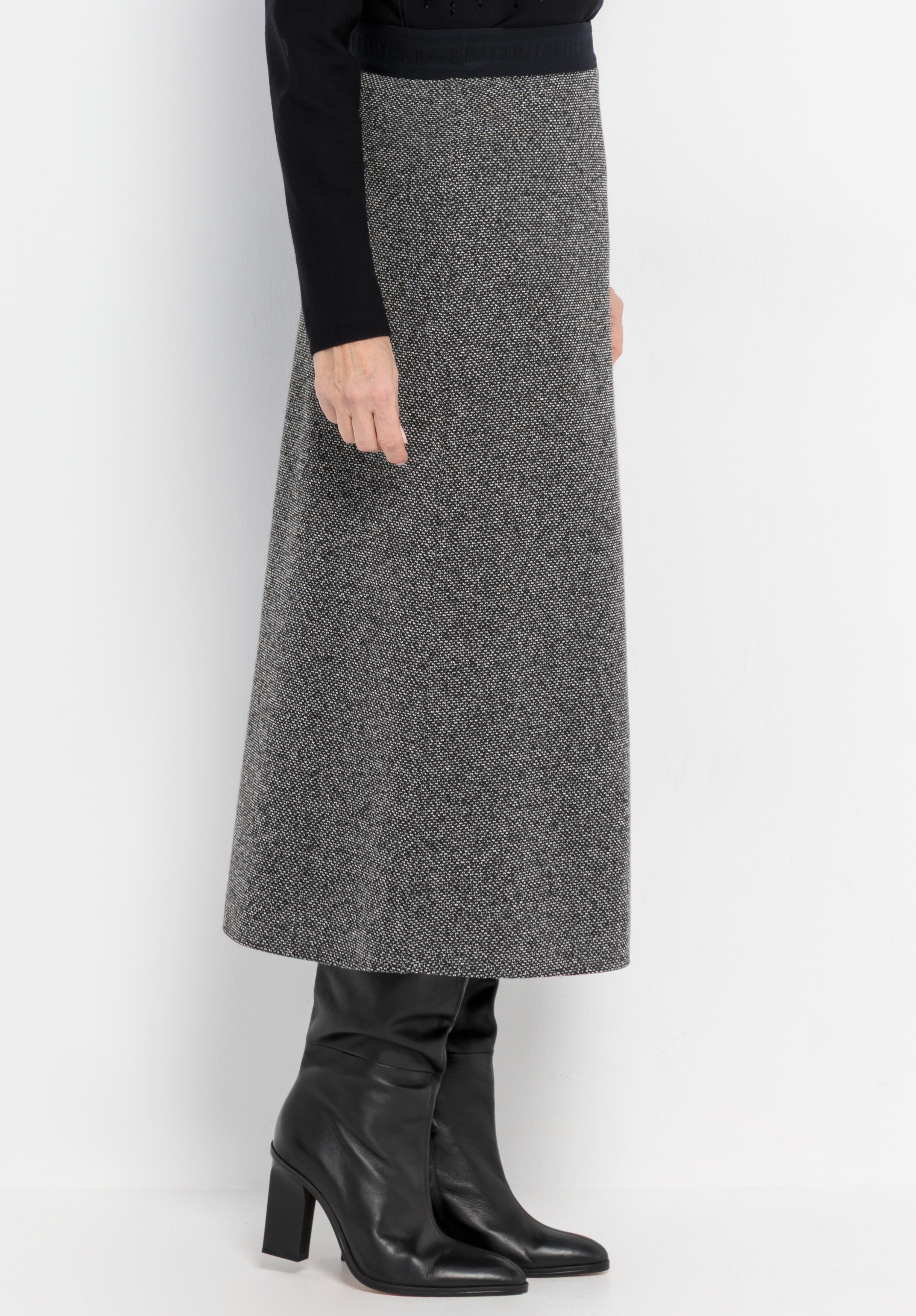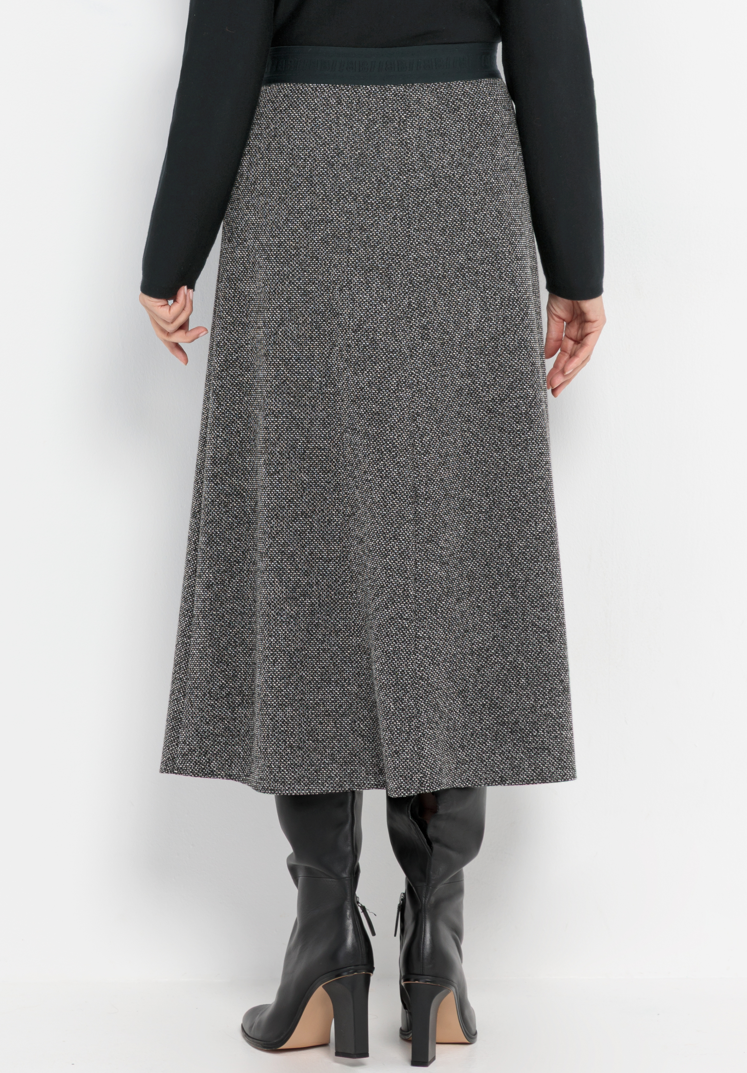 Lässig und vielseitig! Unser neuer Schlupfrock Jilan aus melierter Jersey-Qualität punktet mit seinem sportiven Logo-Gummibund und den Teilungsnähten. In angesagter Midilänge und mit bequemem Gummibund trägt sich Jilan besonders angenehm. Die lange, leicht schwingende Passform macht ihn zum idealen Stylingpartner, ob entspannt mit Sneakern oder kombiniert mit Bluse und Sandalen für einen femininen Look.
