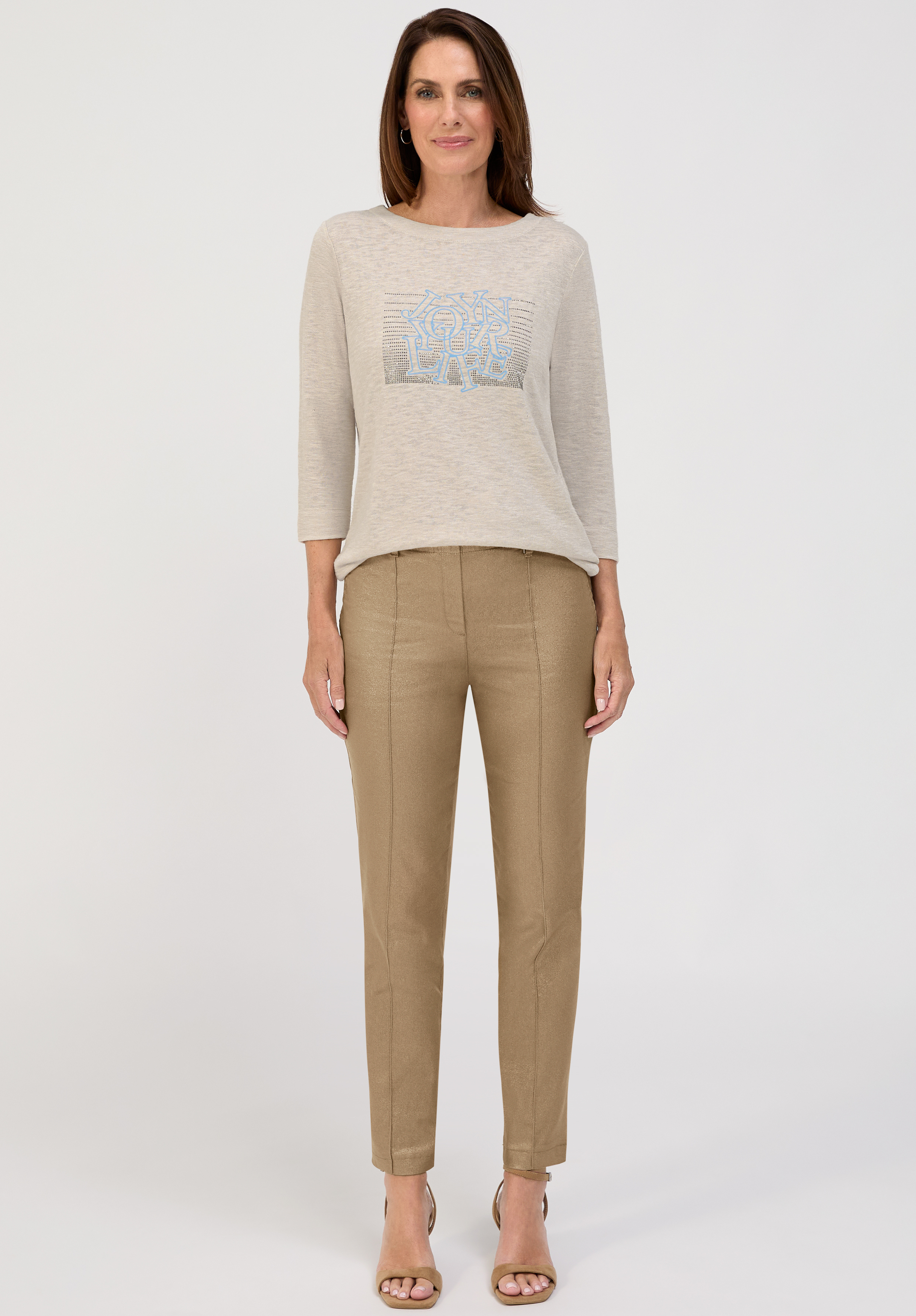 Moderner Chic mit höchstem Tragekomfort: Unsere Stretch-Hose Denver überzeugt mit einer schmalen, verkürzten Passform und einem cleanen Look. Das leicht glänzende Material im hochwertigen Baumwoll-Modal-Mix mit Elasthan bietet optimale Bewegungsfreiheit. Ein elastischer Gummibund mit Gürtelschlaufen sorgt für Bequemlichkeit, während die abgesteppte Biese und kleine Schlitze am Saum das Design modern abrunden. Ein vielseitiges Modell für viele Gelegenheiten.
