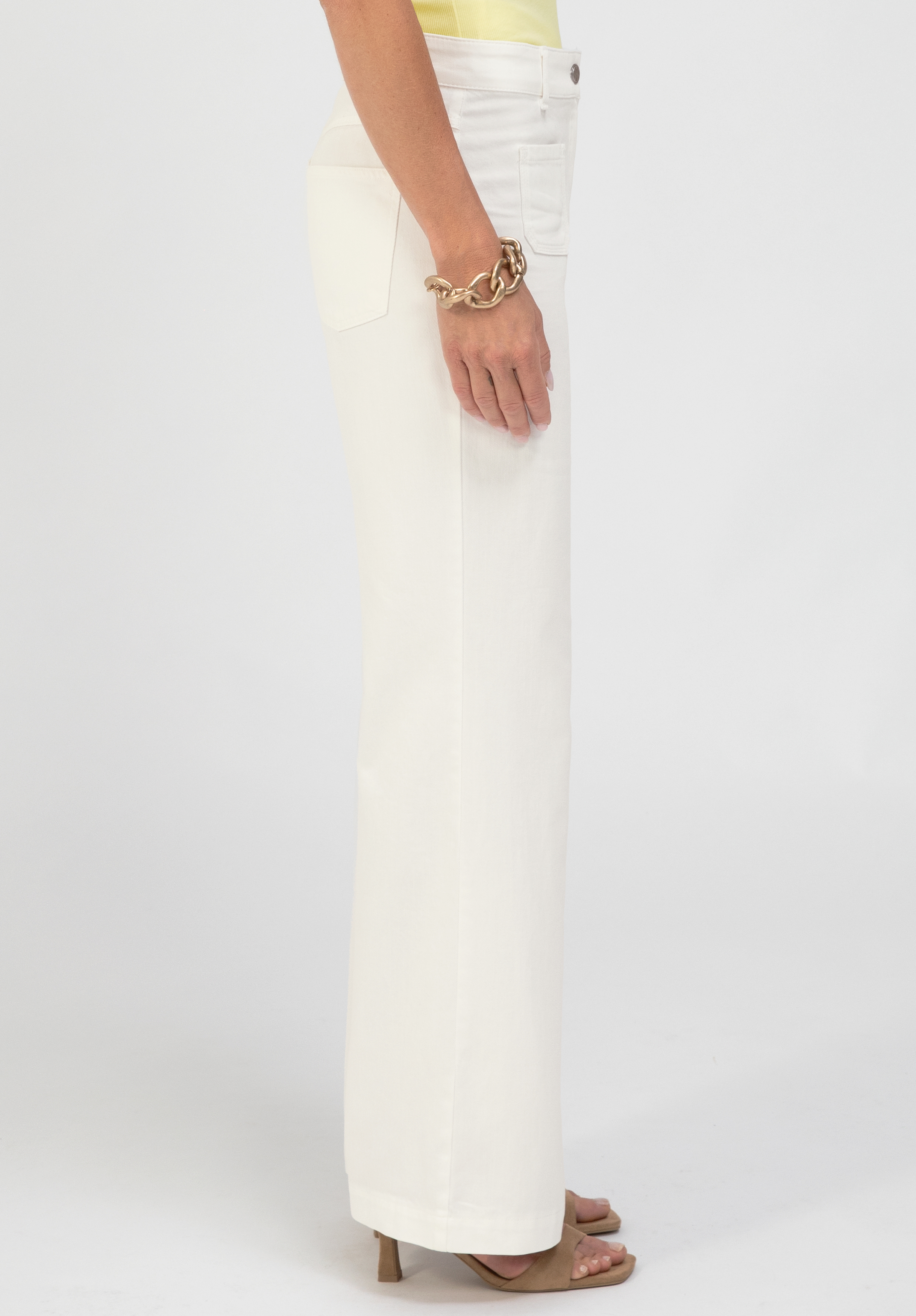 Lässig und stilvoll präsentiert sich unsere neue Stretch-Hose Melbourne in White Denim. Mit ihrer langen, weiten Passform und der cleanen Optik bietet sie vielseitige Kombinationsmöglichkeiten für moderne Looks. Aufgesetzte Taschen vorne und hinten runden das Design harmonisch ab und unterstreichen den trendigen Charakter. Durch den Stretch-Anteil bietet die Hose angenehmen Tragekomfort. Melbourne ist damit der ideale Begleiter für stilvolle und entspannte Outfits. Das Modell fällt etwas kleiner aus - wir empfehlen, eine Nummer größer zu wählen.