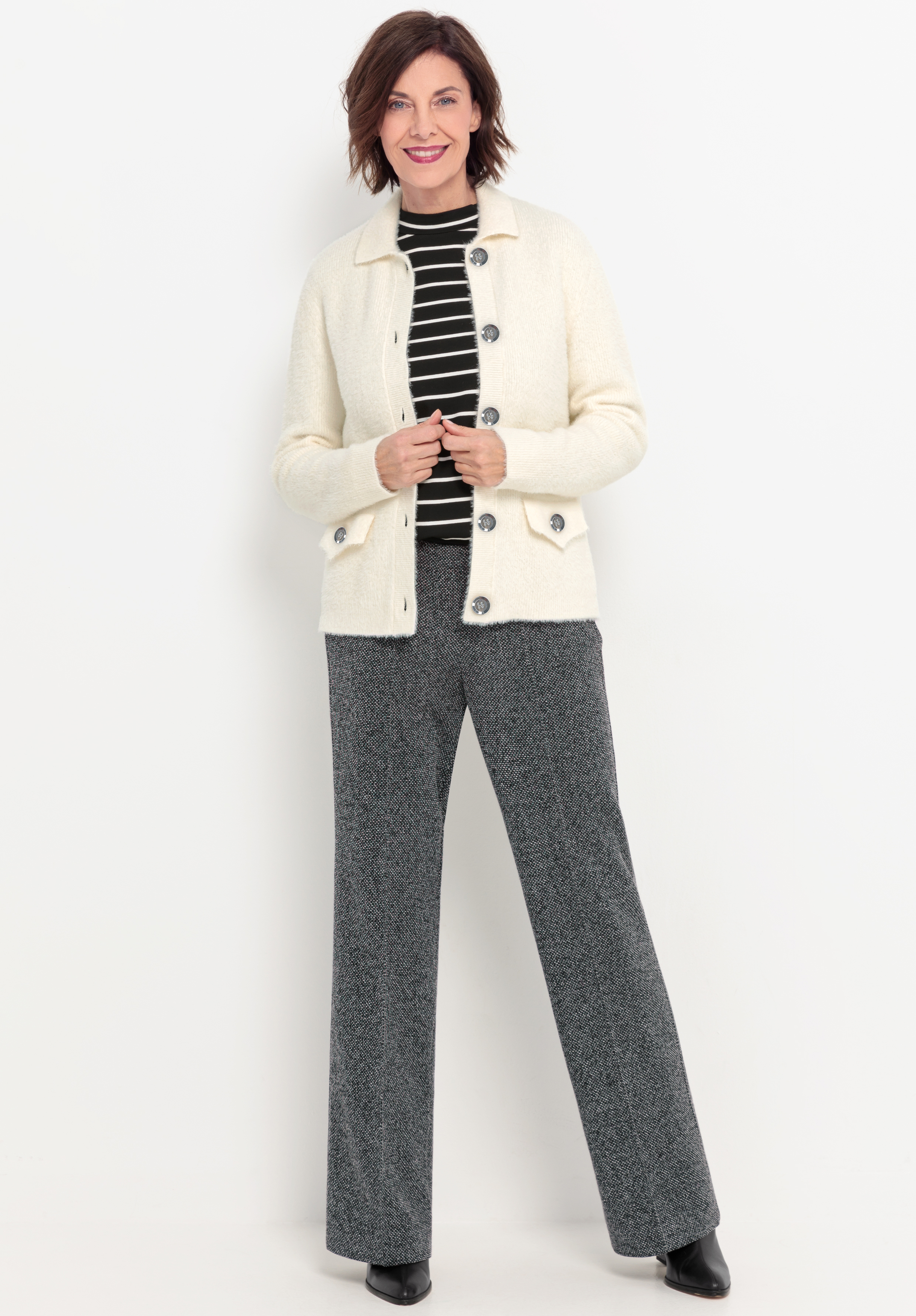 Cool und vielseitig! Unsere Stretch-Hose Parigi begeistert mit moderner Salz-Pfeffer-Optik und gerader Silhouette. Dezente Reißverschlusstaschen und die abgesteppten Biesen vorne setzen stilvolle Akzente. Der rundum gearbeitete Logo-Gummibund verbindet Komfort mit einer sportiv-eleganten Ausstrahlung. Gefertigt aus hochwertiger Jerseyqualität trägt sich Parigi besonders angenehm und lässt sich unkompliziert kombinieren, ob mit Strick, Bluse oder Blazer, diese Hose passt immer.