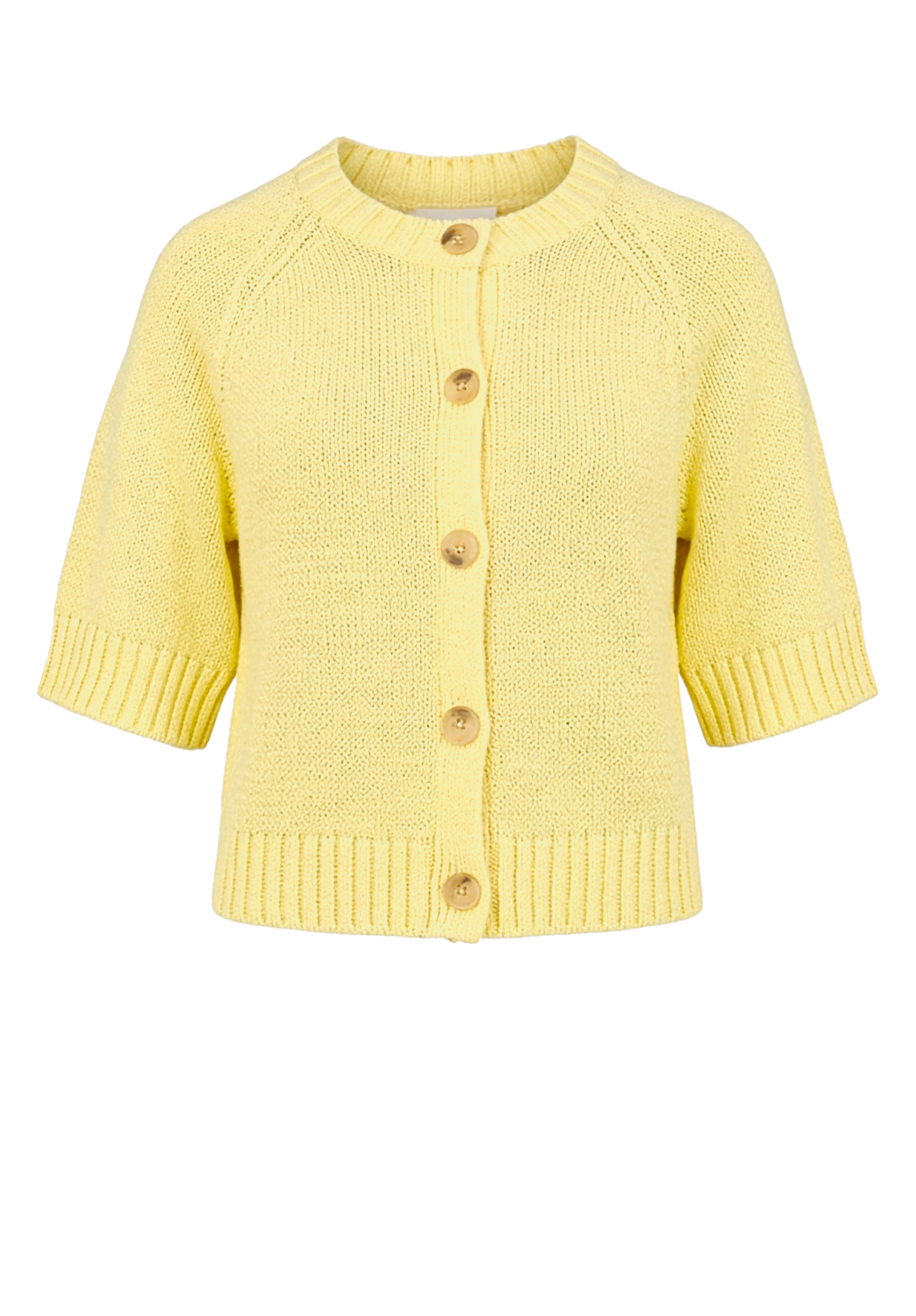 Sommerlich leicht und stilvoll! Strickjacke Rona begeistert mit ihrem zarten Farbton, einer klassischen Knopfleiste und einem zeitlosen Rundhalsausschnitt. Die halblangen Ärmel und feine Rippbündchen verleihen ihr eine moderne Note. Dank weichem Bändchengarn und angenehmer Passform trägt sie sich besonders komfortabel - ein vielseitiger Begleiter für viele Gelegenheiten.