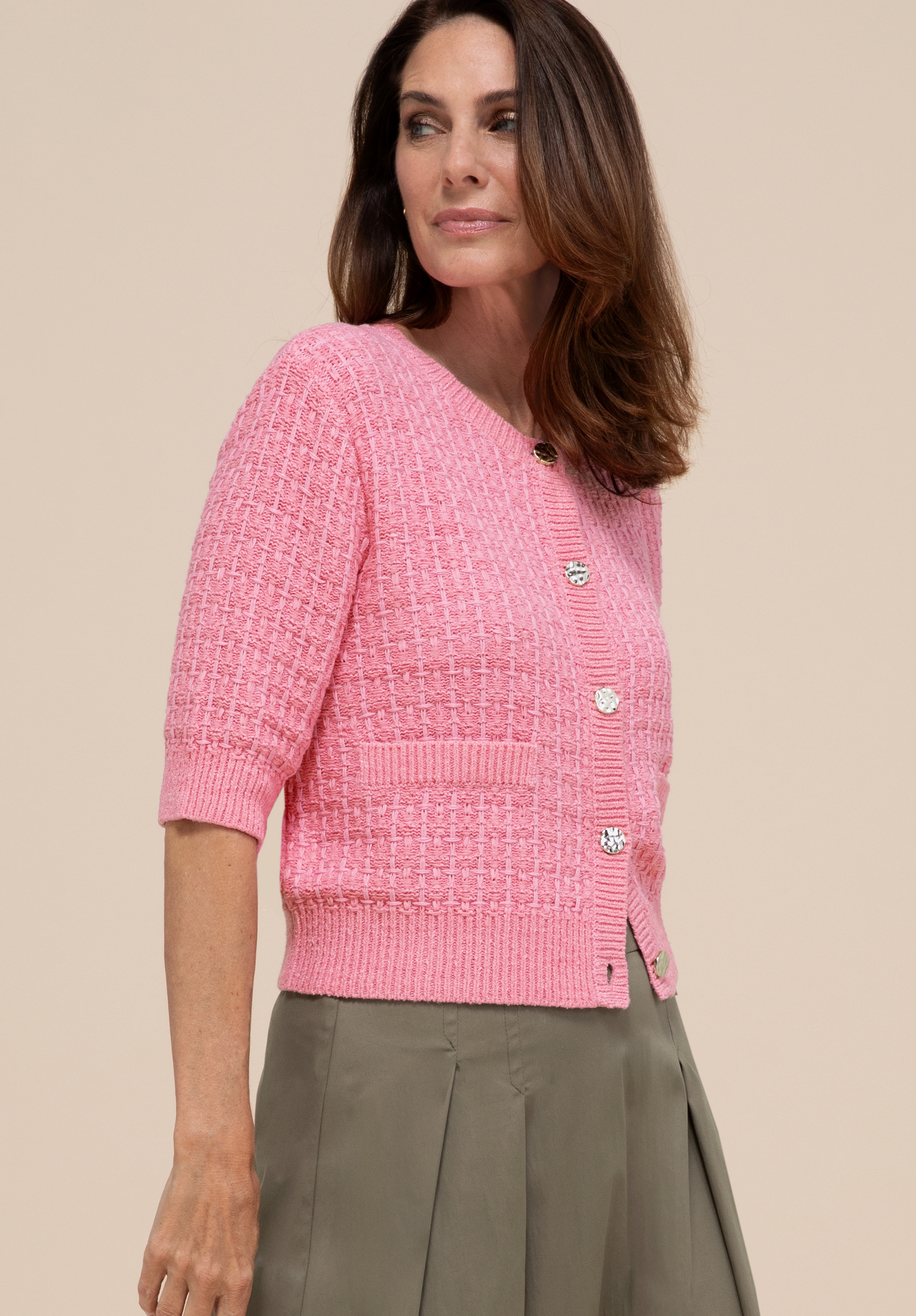 • Feminine Strickjacke mit Kurzarm, moderne Stricktechnik